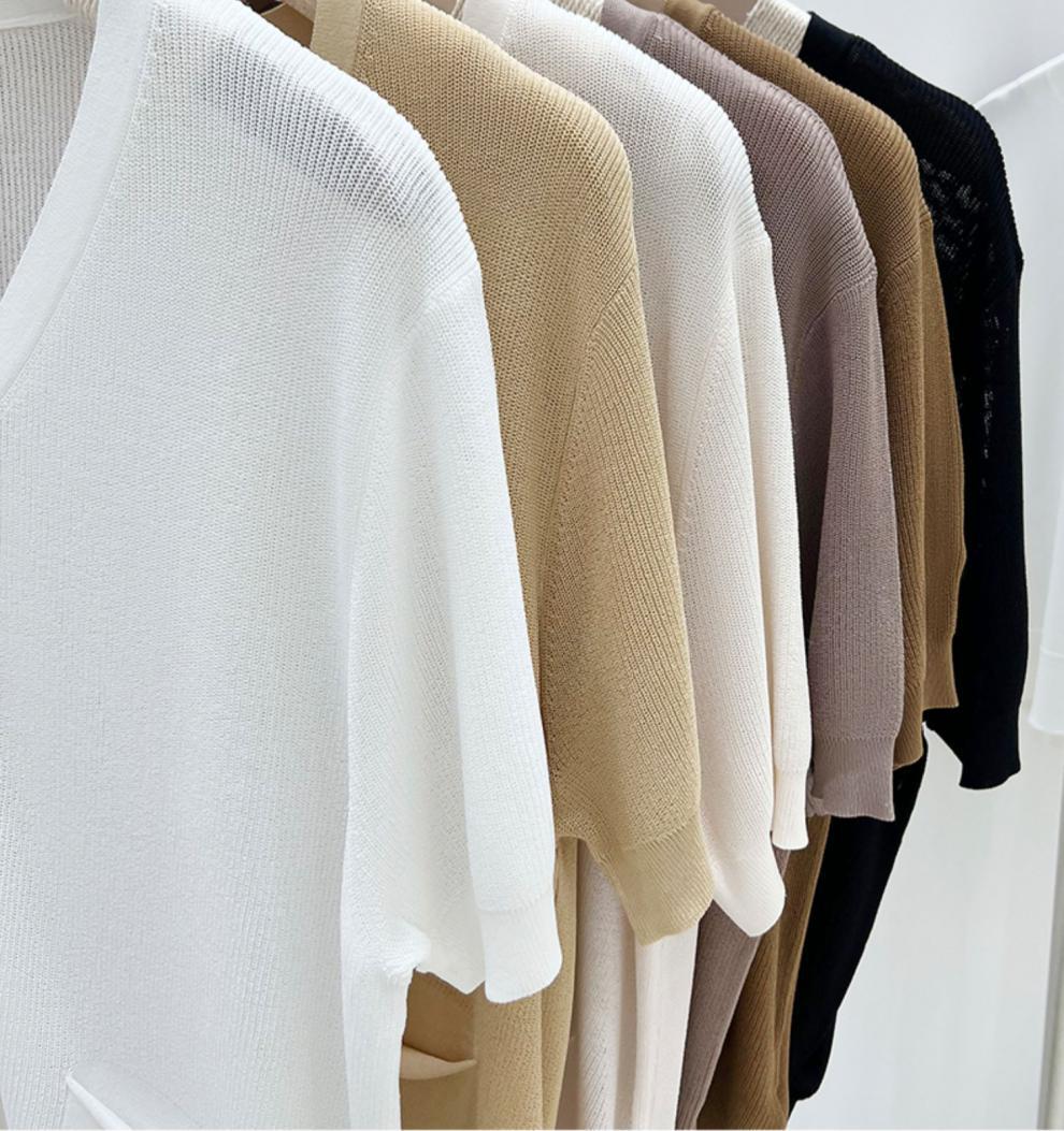 V-넥 반팔 어깨 니트 가짜 가디건 여성용 여름 얇은 탑 2023 새로운 느슨한 슬림 셔츠스토어 가기