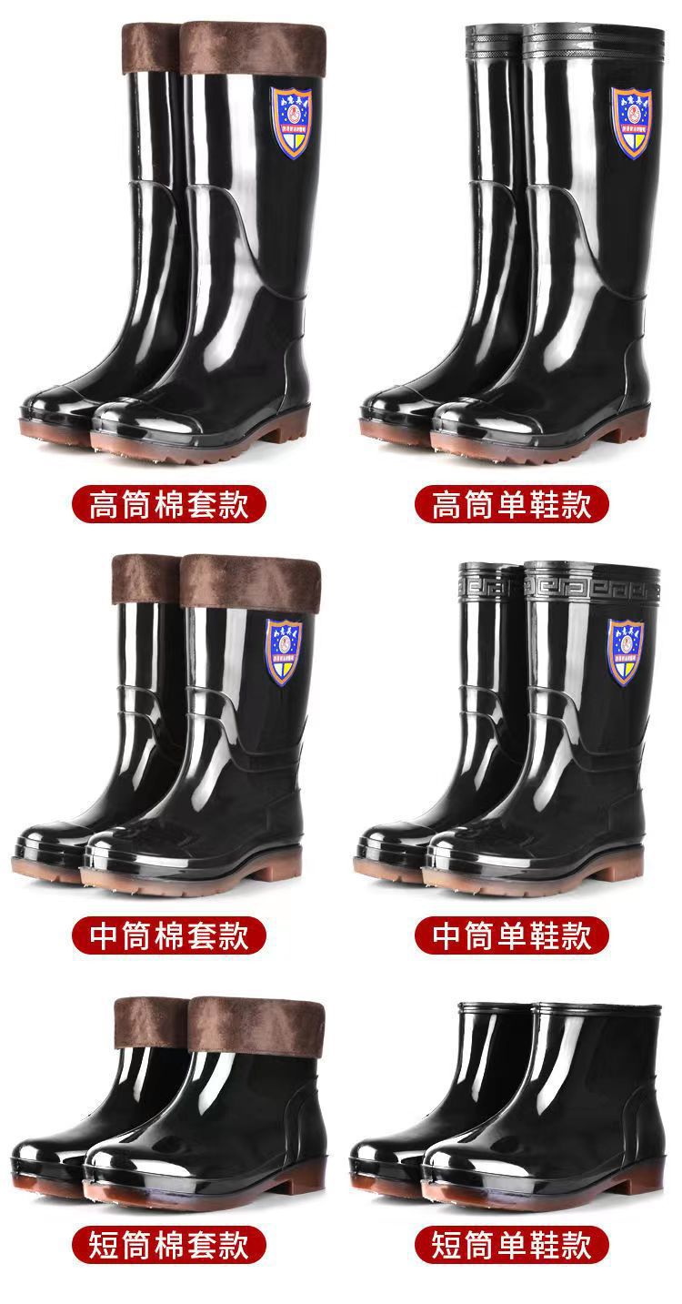 장화 두꺼운 쇠고기 밑창 노동 보호 남자의 미끄럼 방지 내마모성 기모 물 장화 건설 현장 고무 고등학교 짧은 튜브 남성용 방수 신발