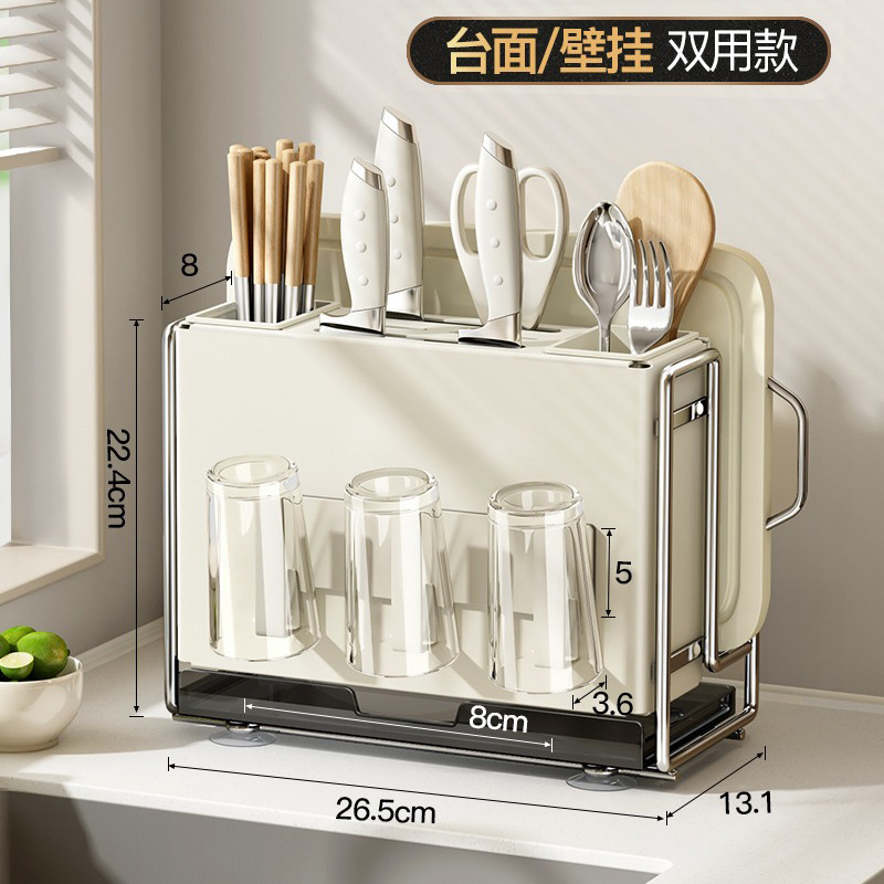 크림 스타일 주방 칼 랙 스토리지 랙 가정용 다기능 칼 젓가락 케이지 랙 수조 도마 칼과 젓가락 스토리지 랙