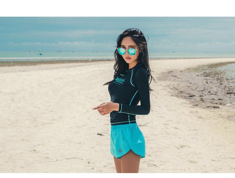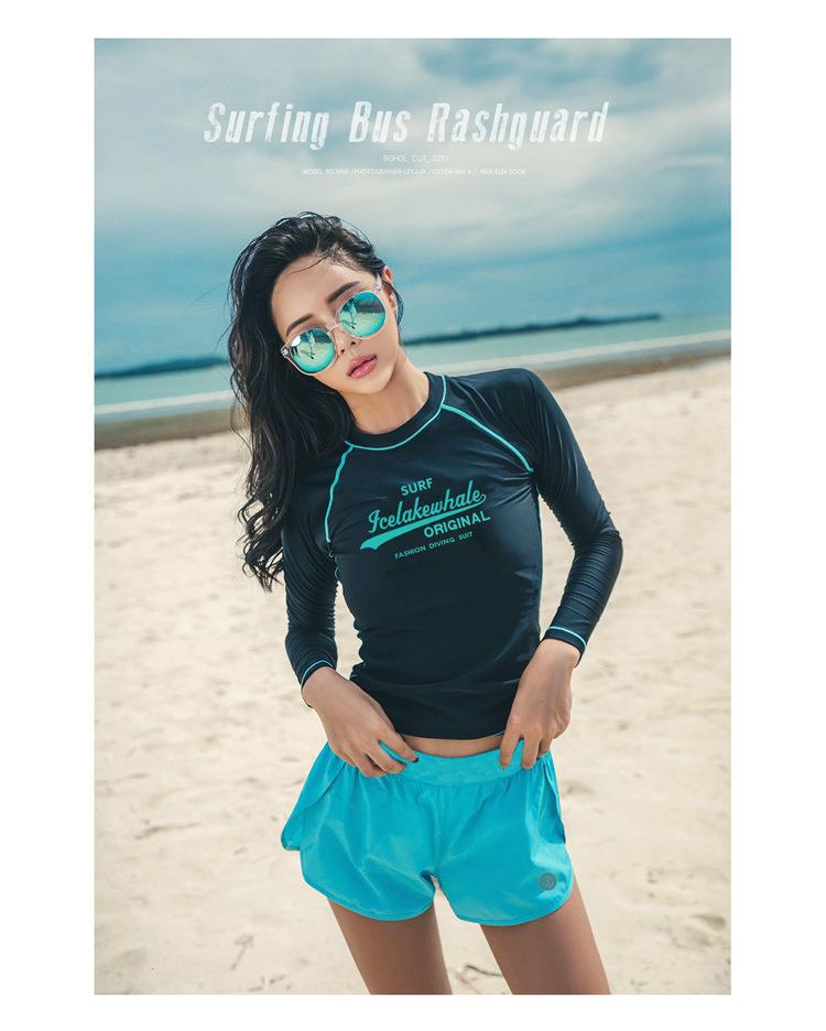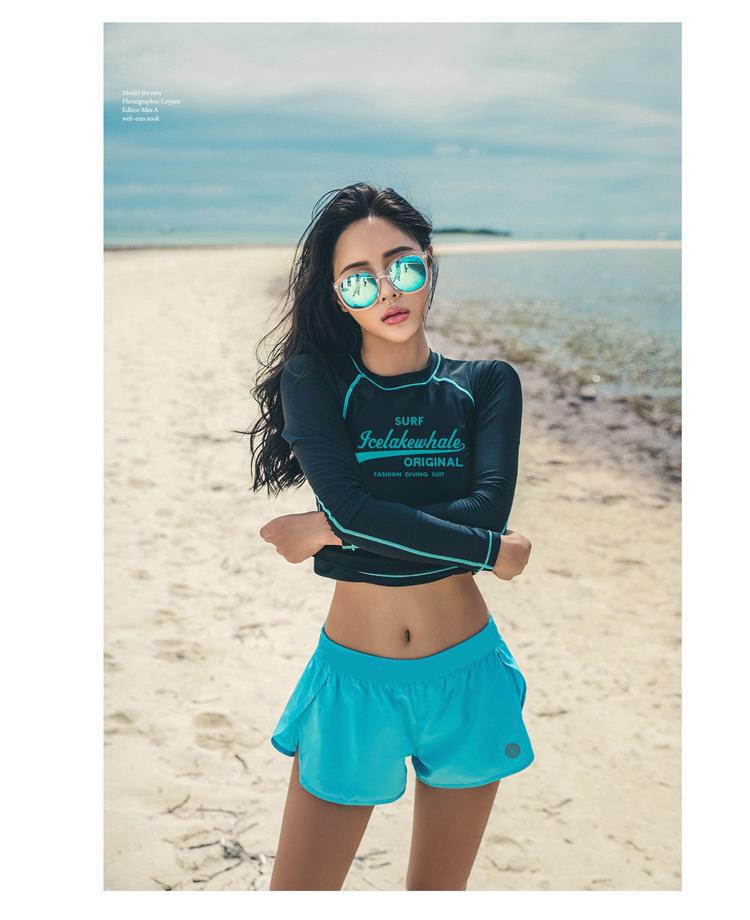 새로운 스타일의 수영복 태양 보호 긴팔 분할 보수적 잠수복 스노클링 슈트 서핑 슈트의 한국어 버전