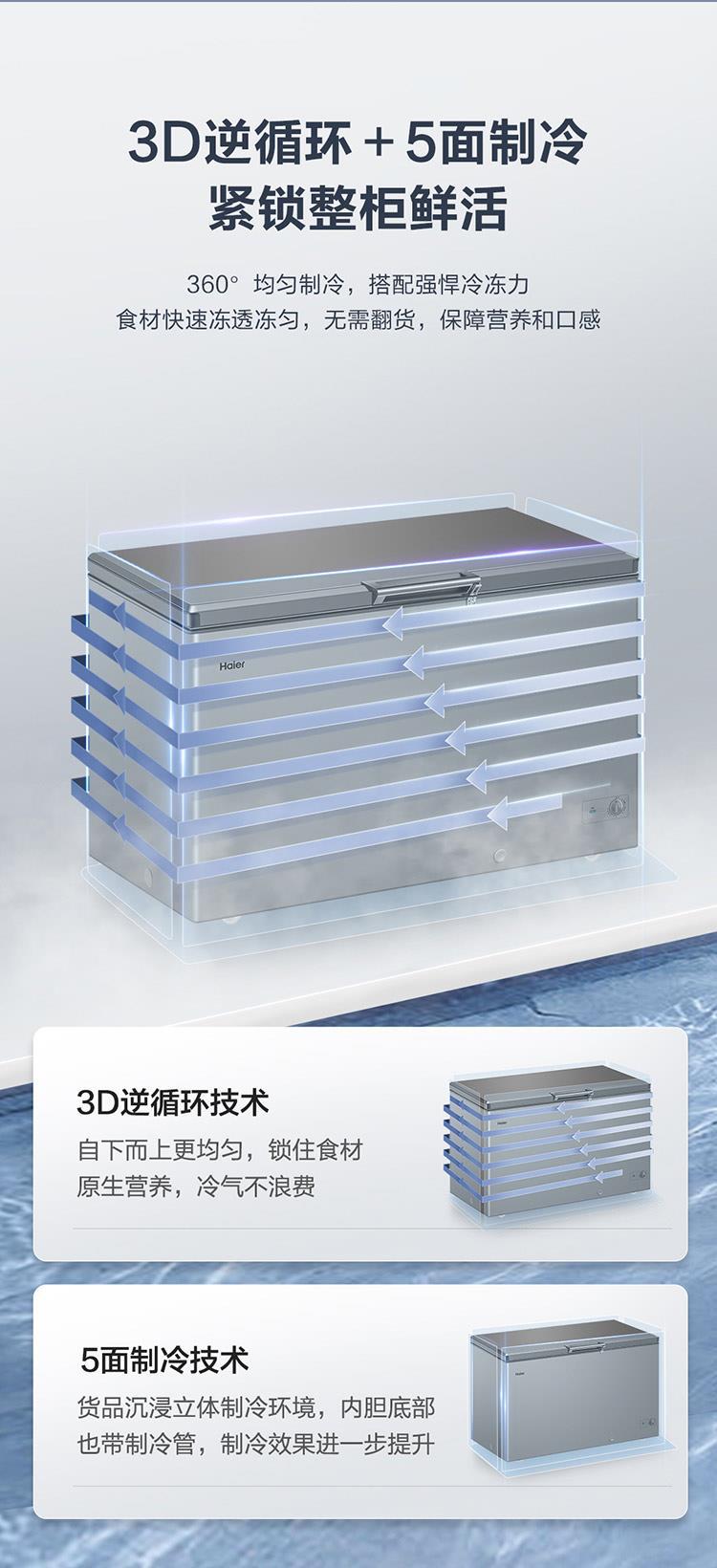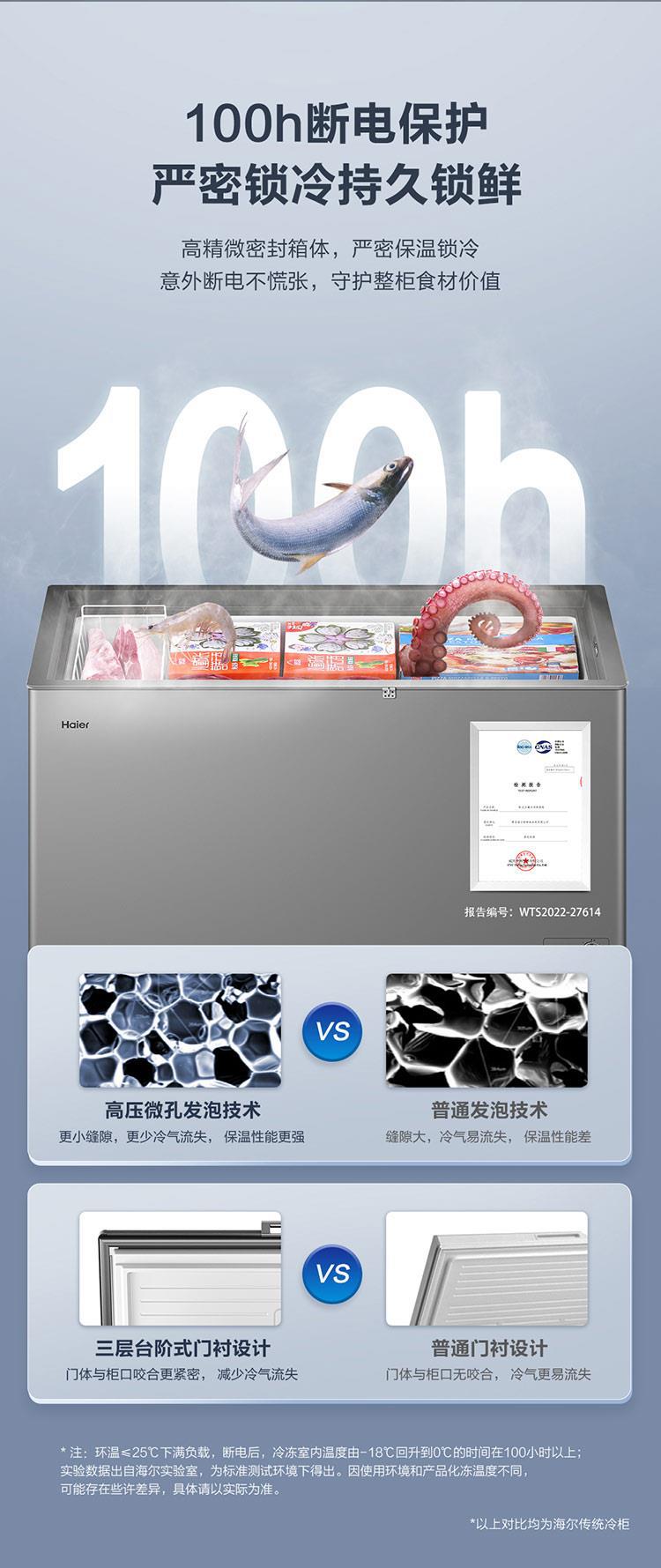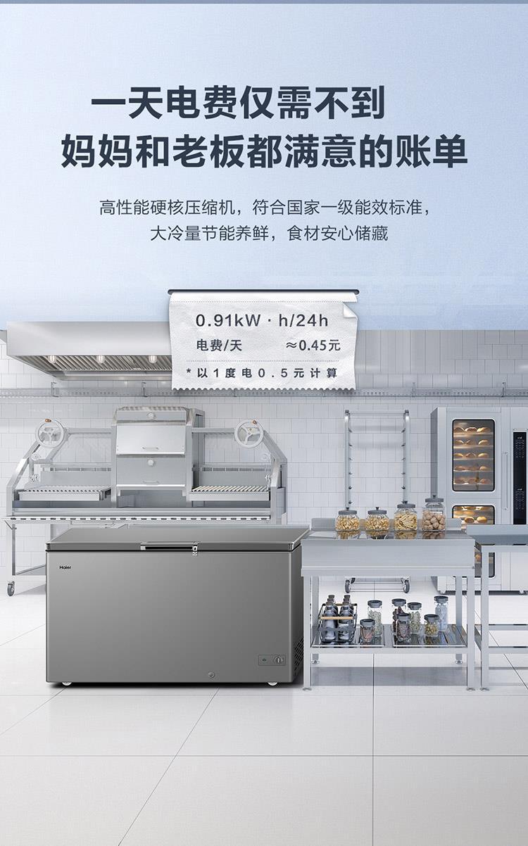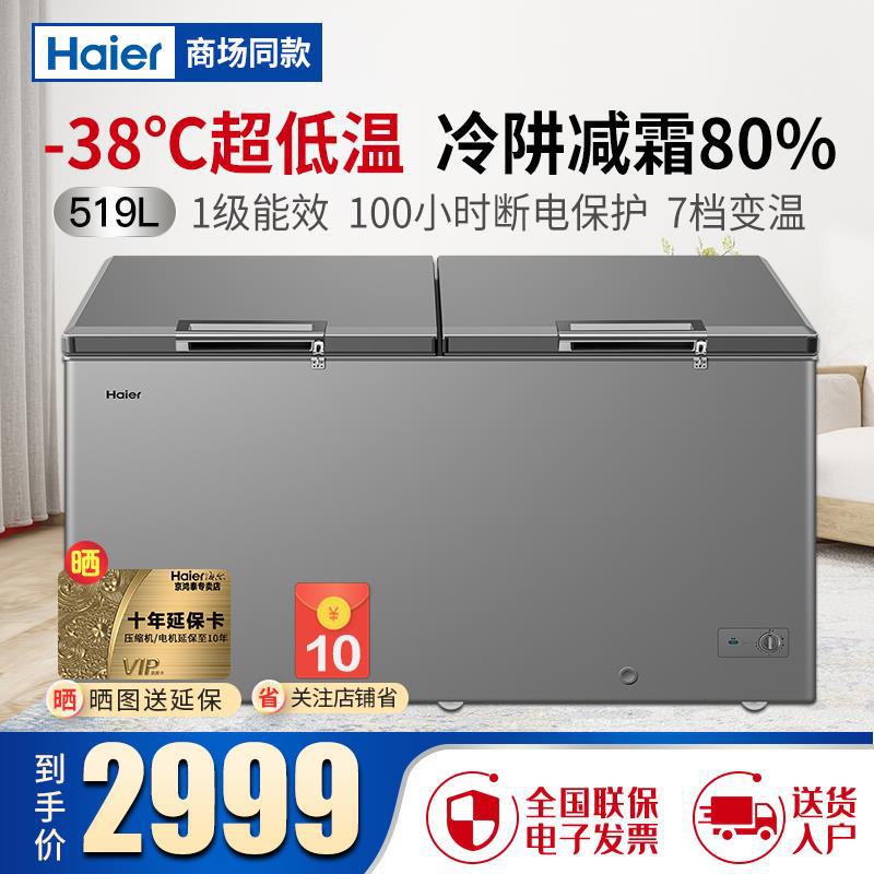 하이얼 상업용 냉동고 대용량 완전 냉동 300 리터 가정용 냉동고 신선한 냉장고 수평 519 리터