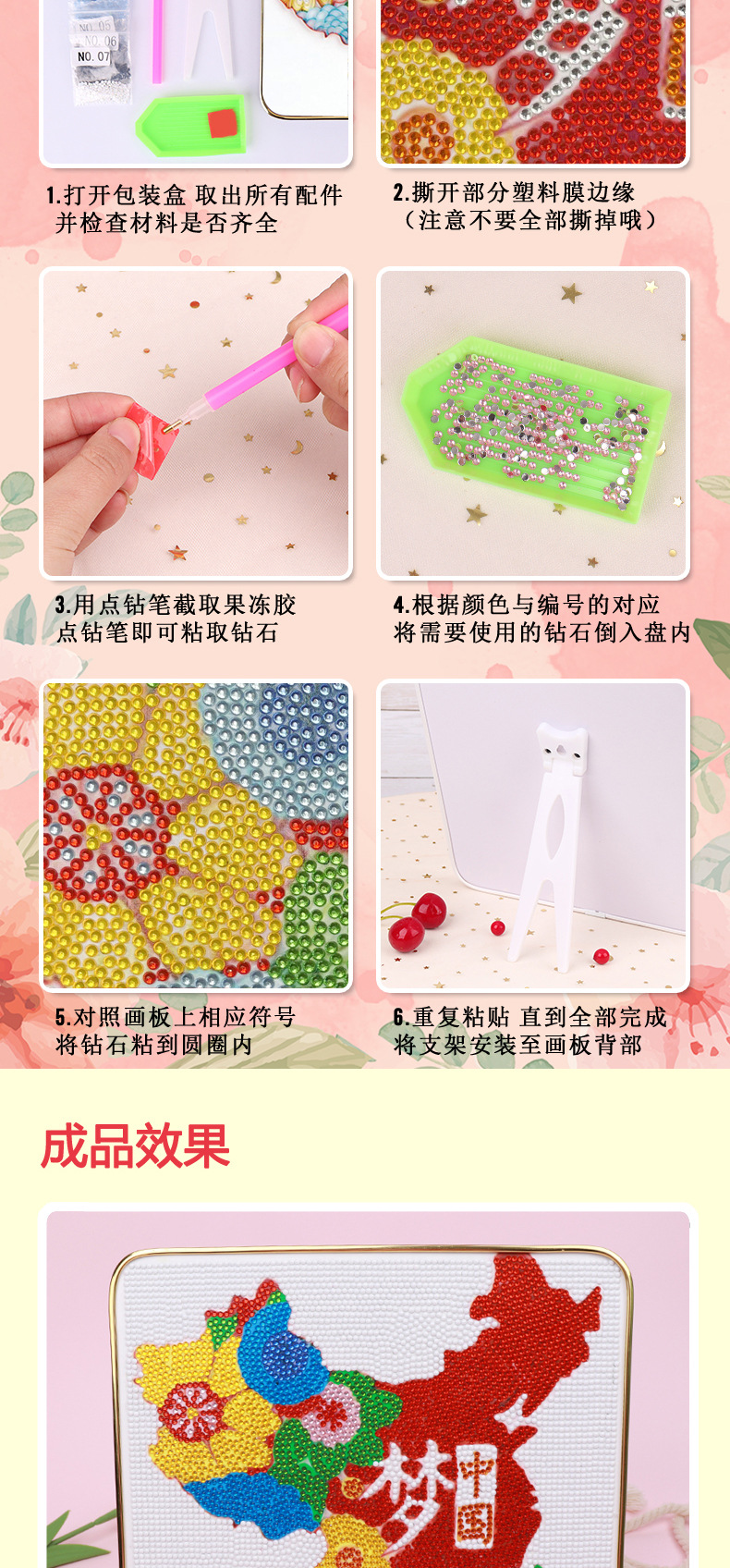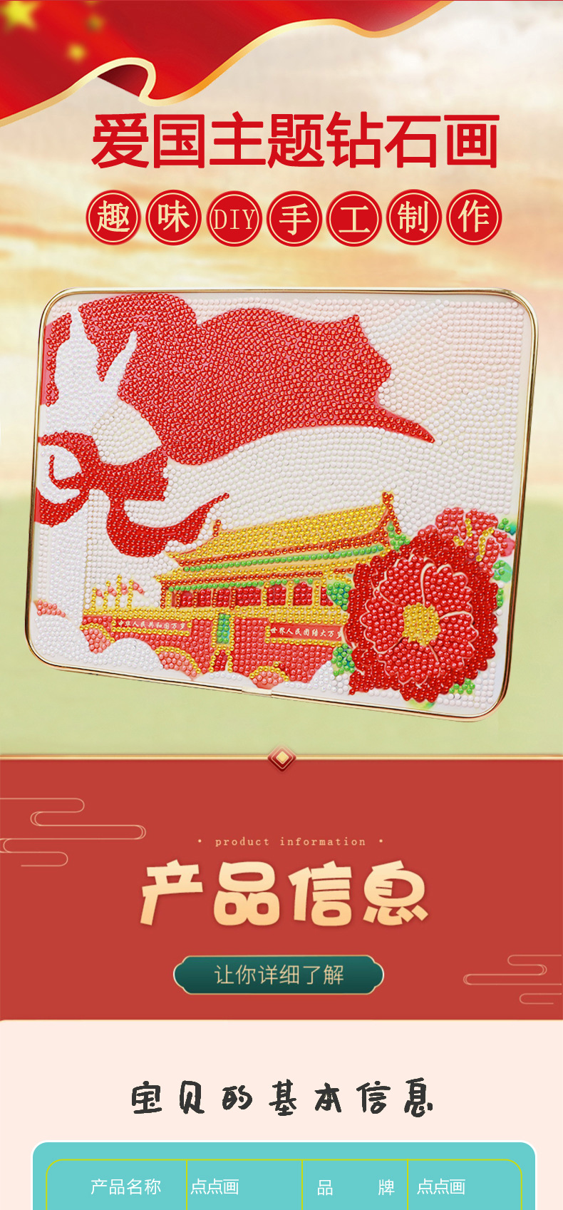 다이아몬드 페인팅 어린이 DIY 수공예 재료 세트 교육용 장난감 선물 애국 테마 스티커 교육용 퍼즐스토어 가기