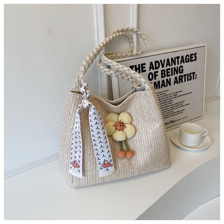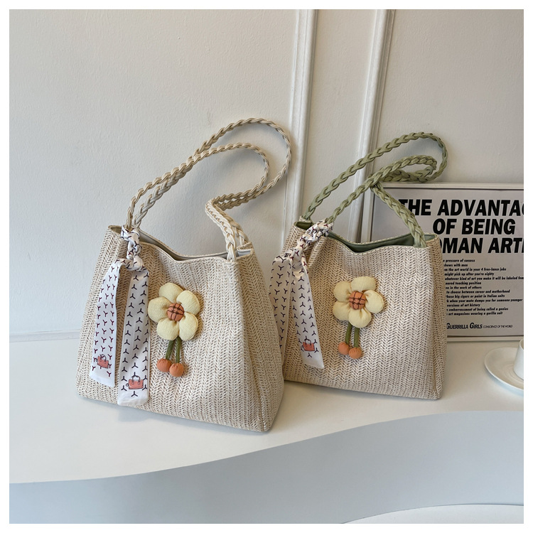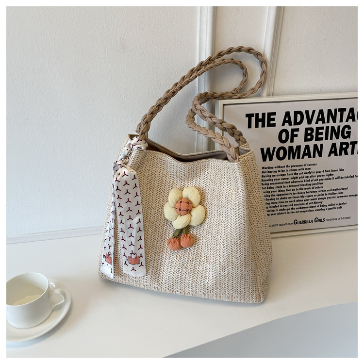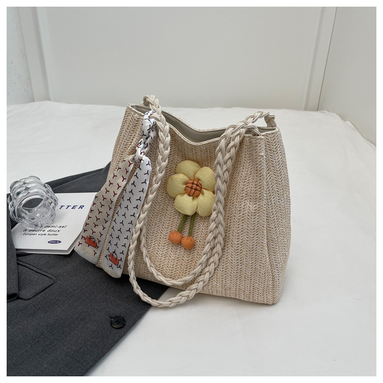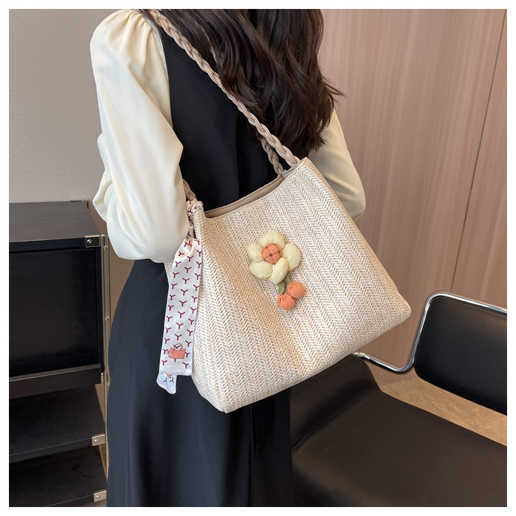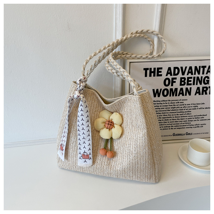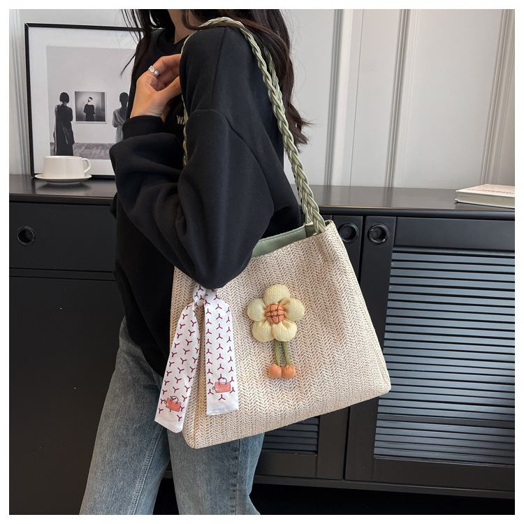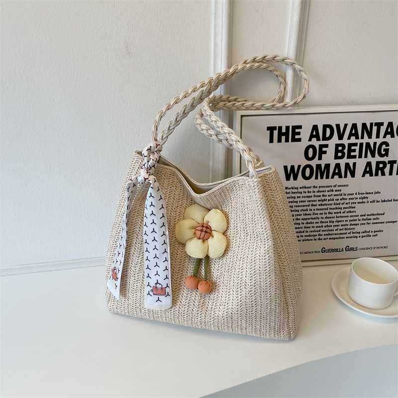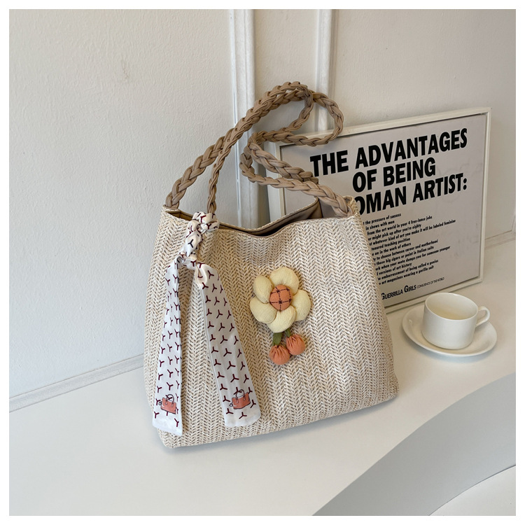 일본식 크리 에이 티브 플라워 숄더백 하라주쿠 스타일 짠 홀리데이 비치 겨드랑이 가방 대용량 천 가방 토트 백