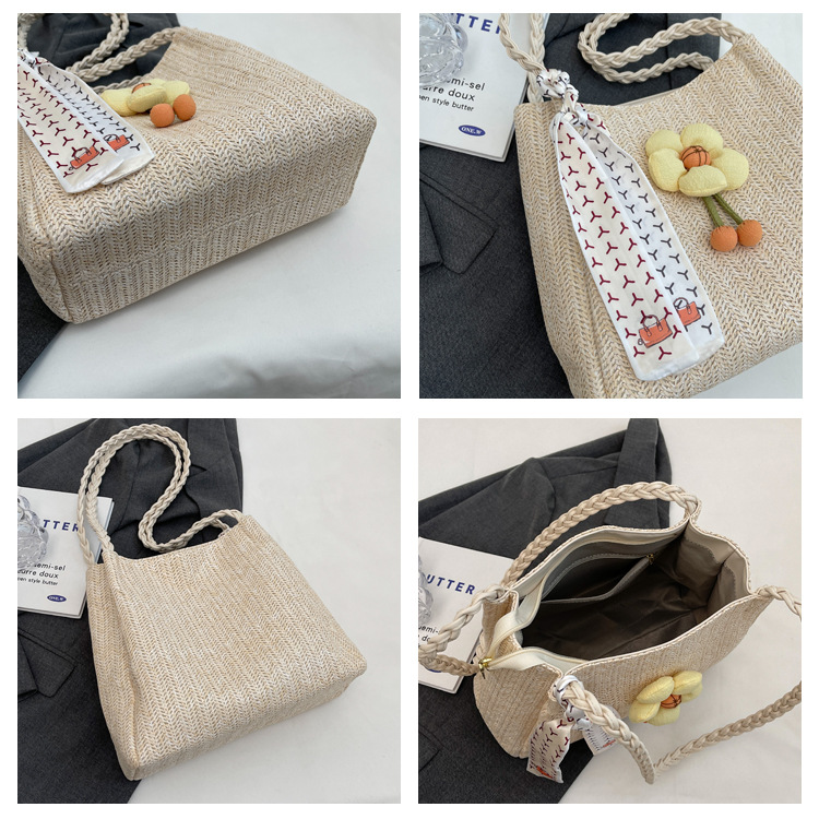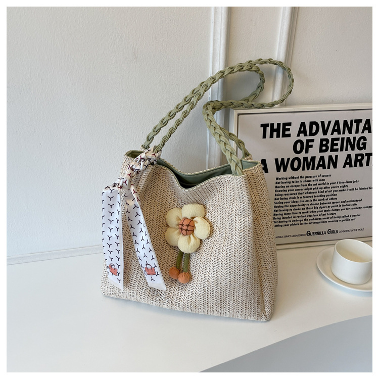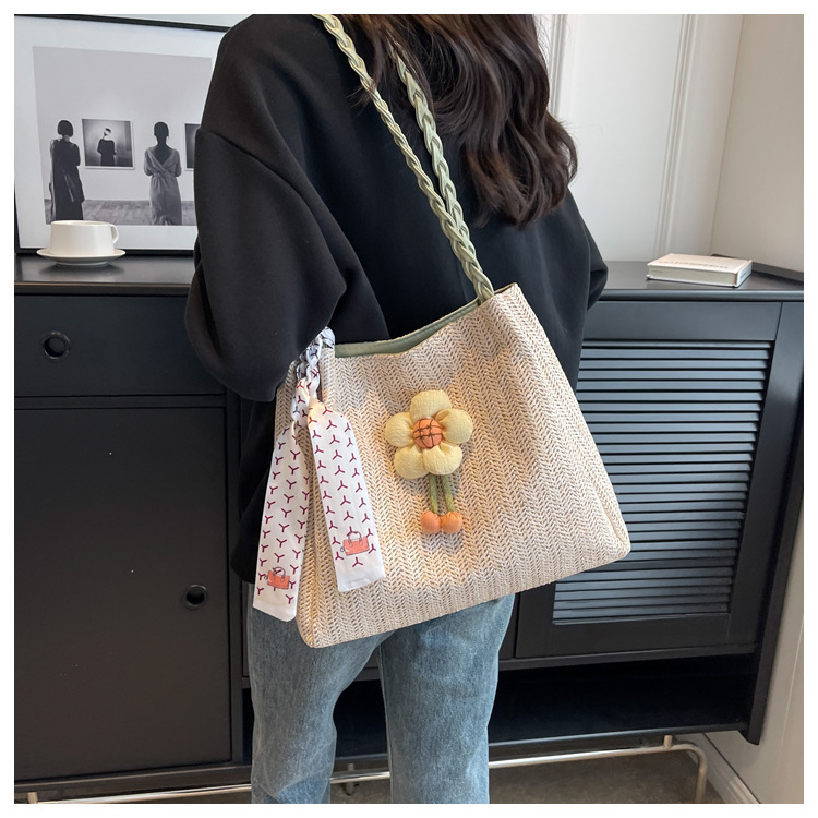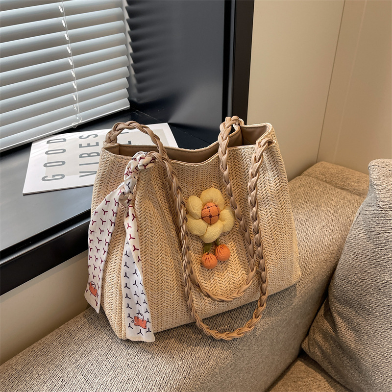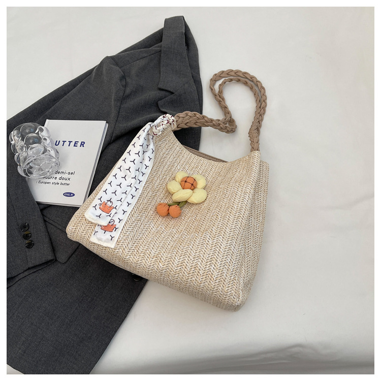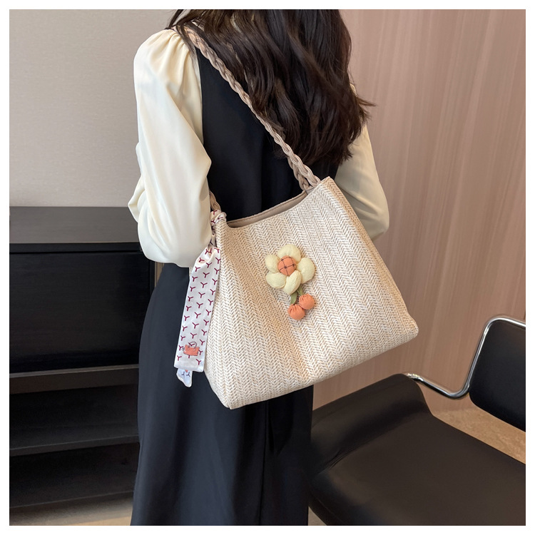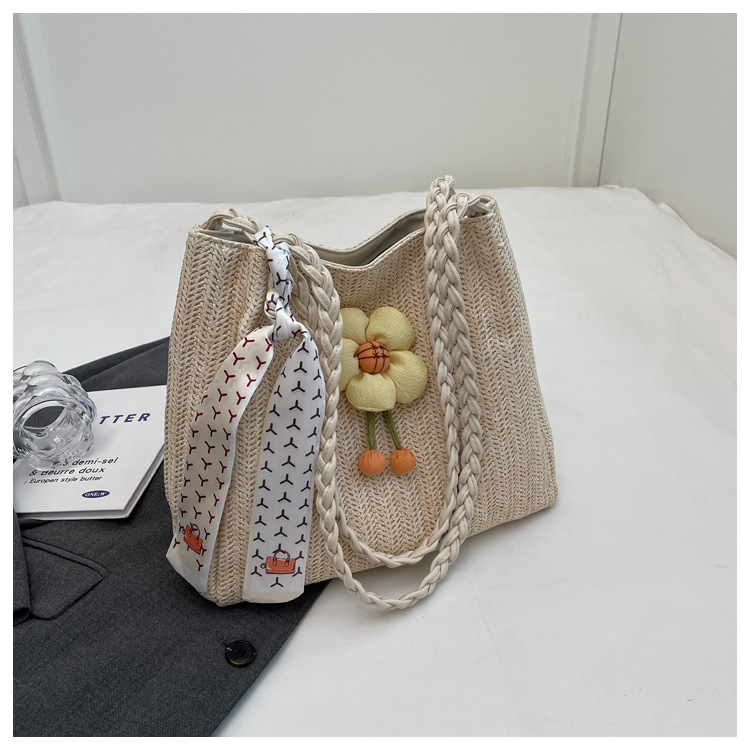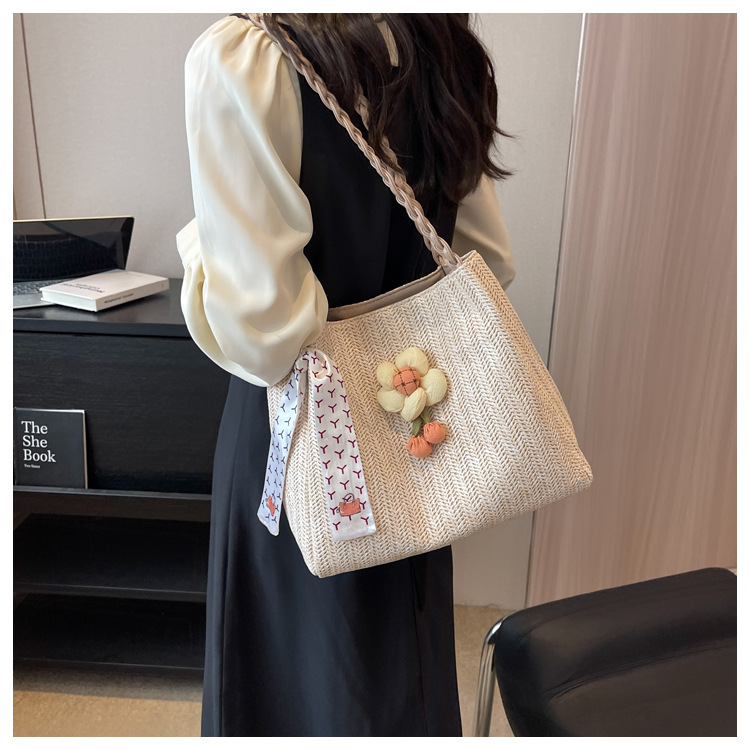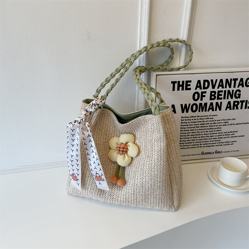 일본식 크리 에이 티브 플라워 숄더백 하라주쿠 스타일 짠 홀리데이 비치 겨드랑이 가방 대용량 천 가방 토트 백
