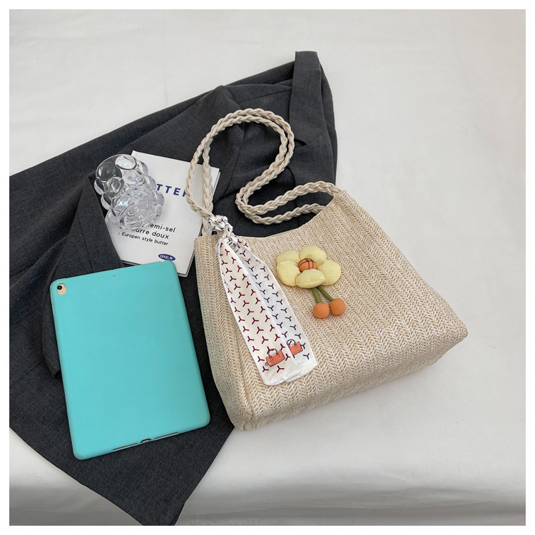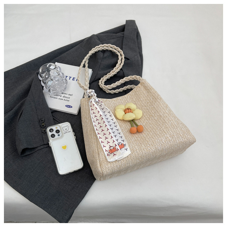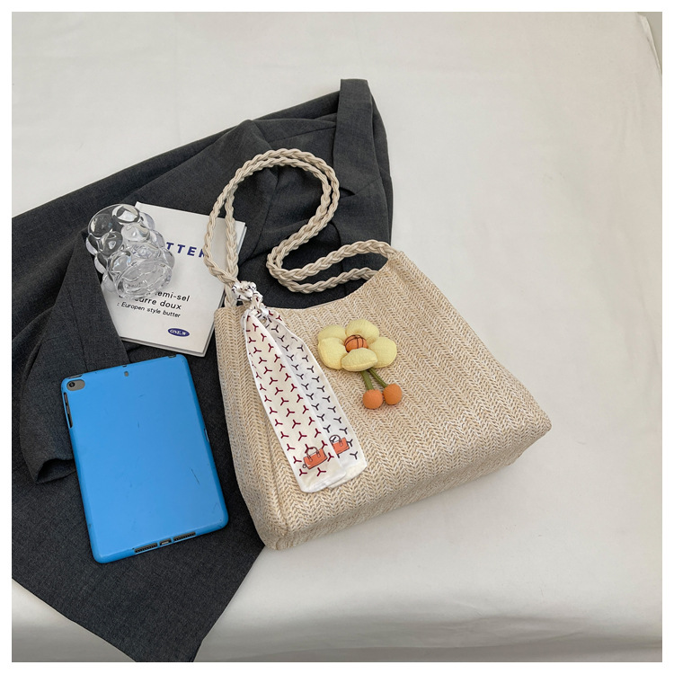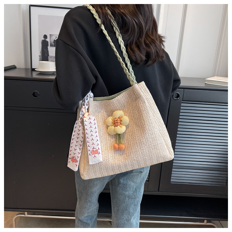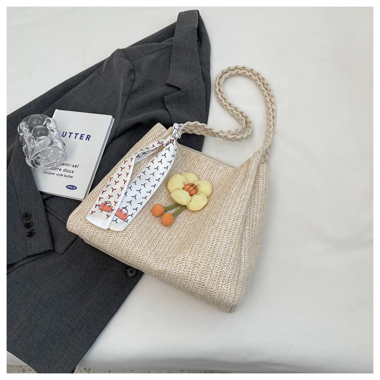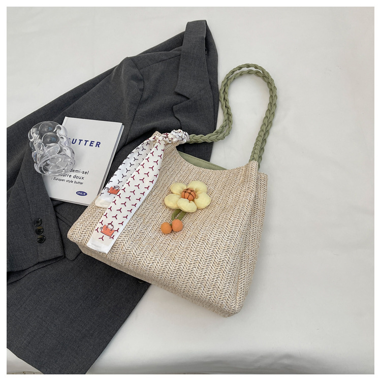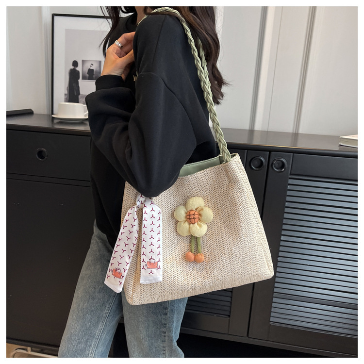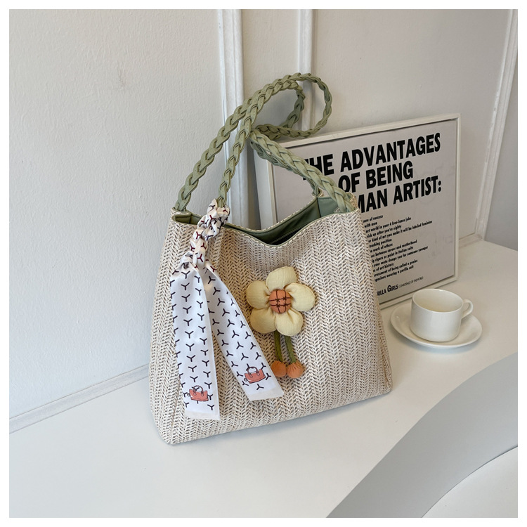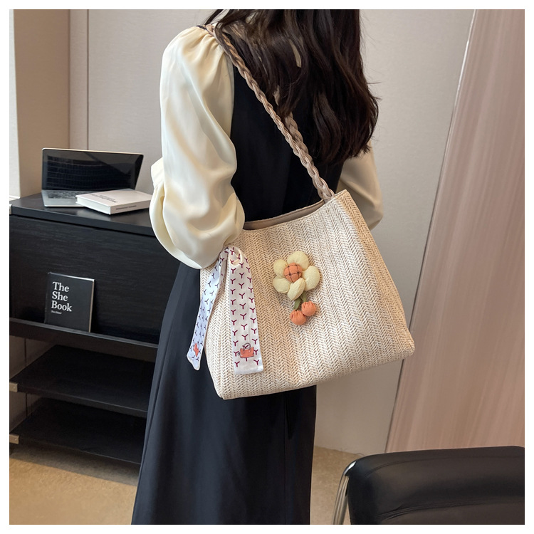 일본식 크리 에이 티브 플라워 숄더백 하라주쿠 스타일 짠 홀리데이 비치 겨드랑이 가방 대용량 천 가방 토트 백
