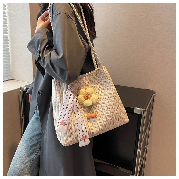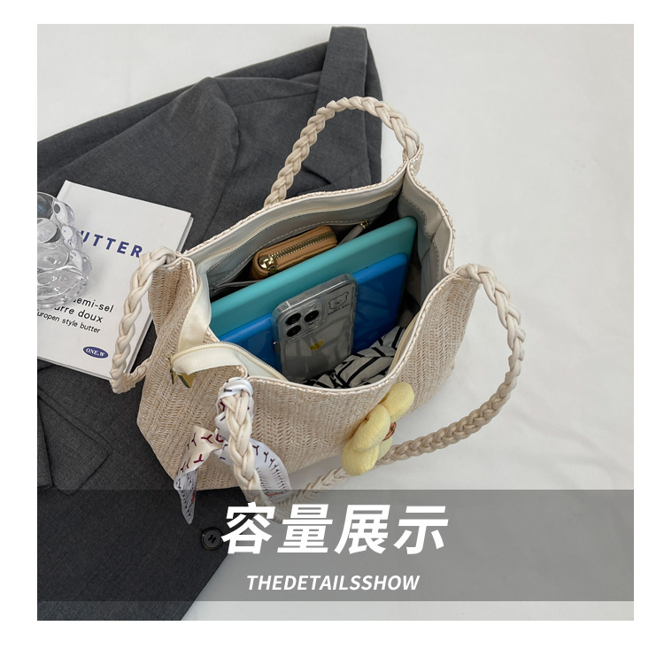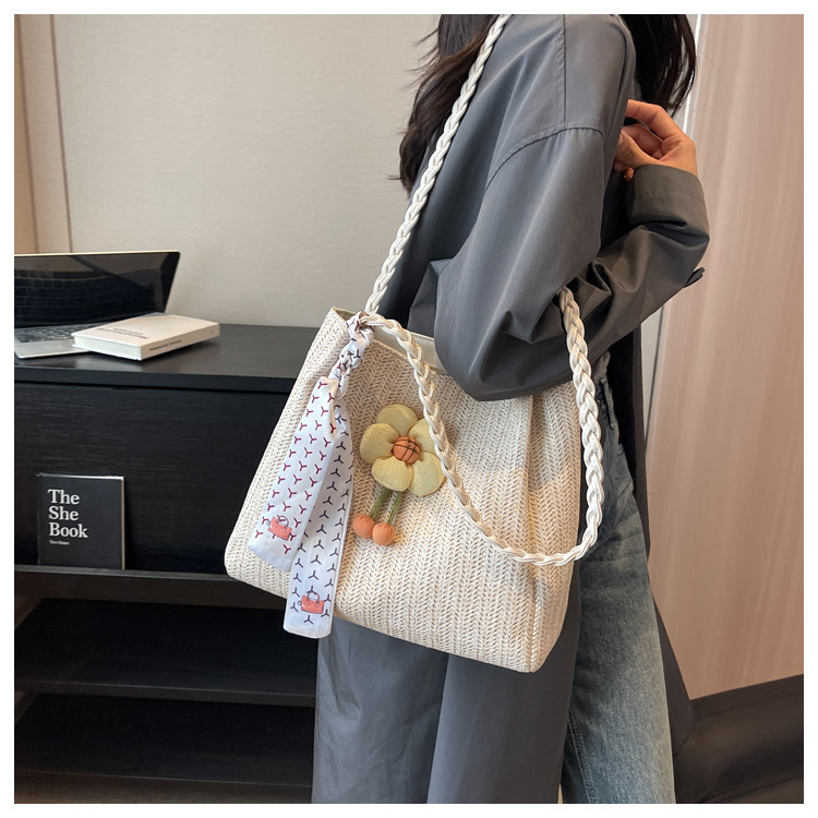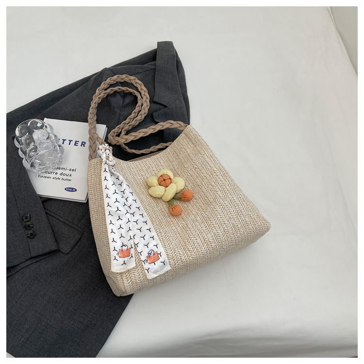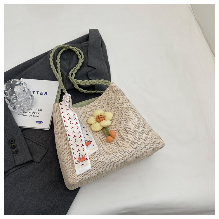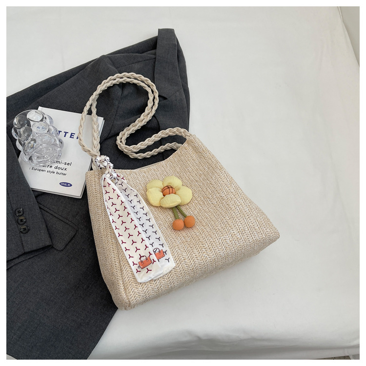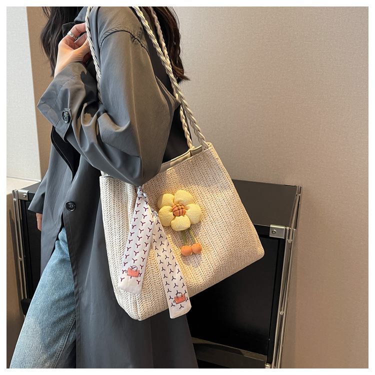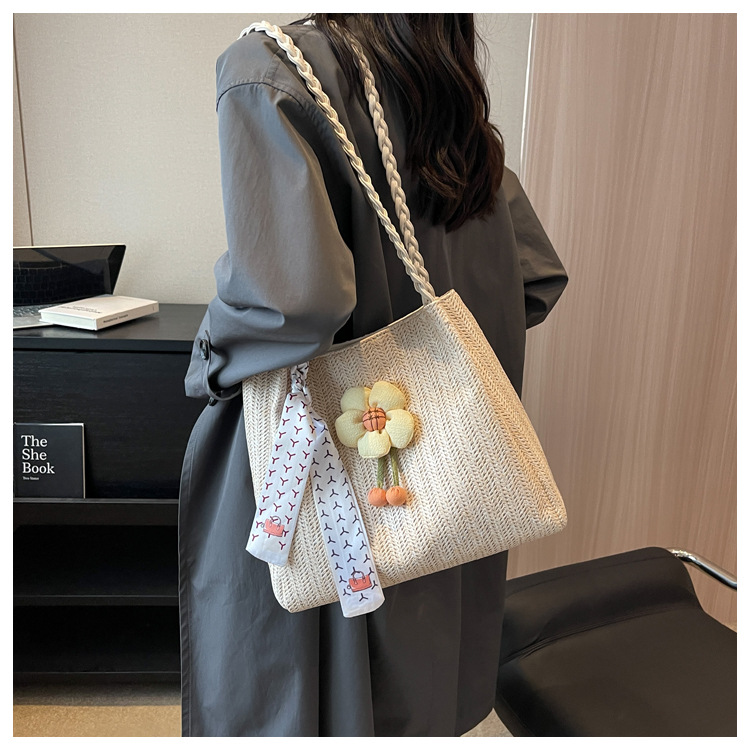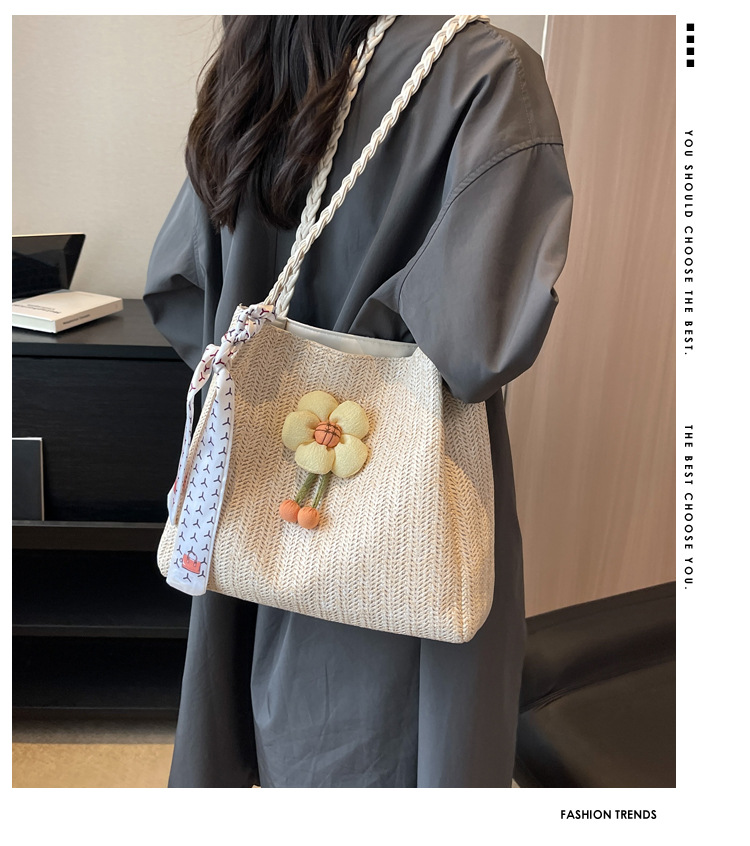 일본식 크리 에이 티브 플라워 숄더백 하라주쿠 스타일 짠 홀리데이 비치 겨드랑이 가방 대용량 천 가방 토트 백