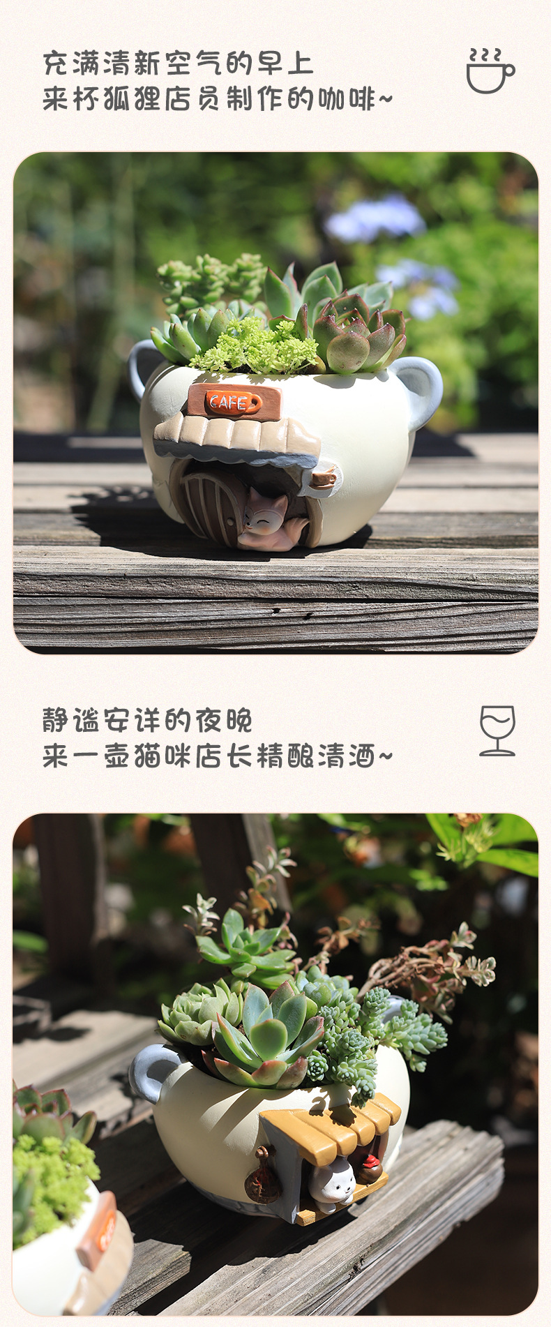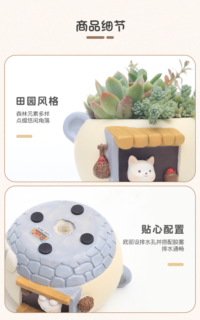 창조적 인 만화 귀여운 애완 동물 다육 질 작은 화분 사무실 발코니 장식 수지 화분 마이크로 풍경 원예 식물 냄비스토어 가기