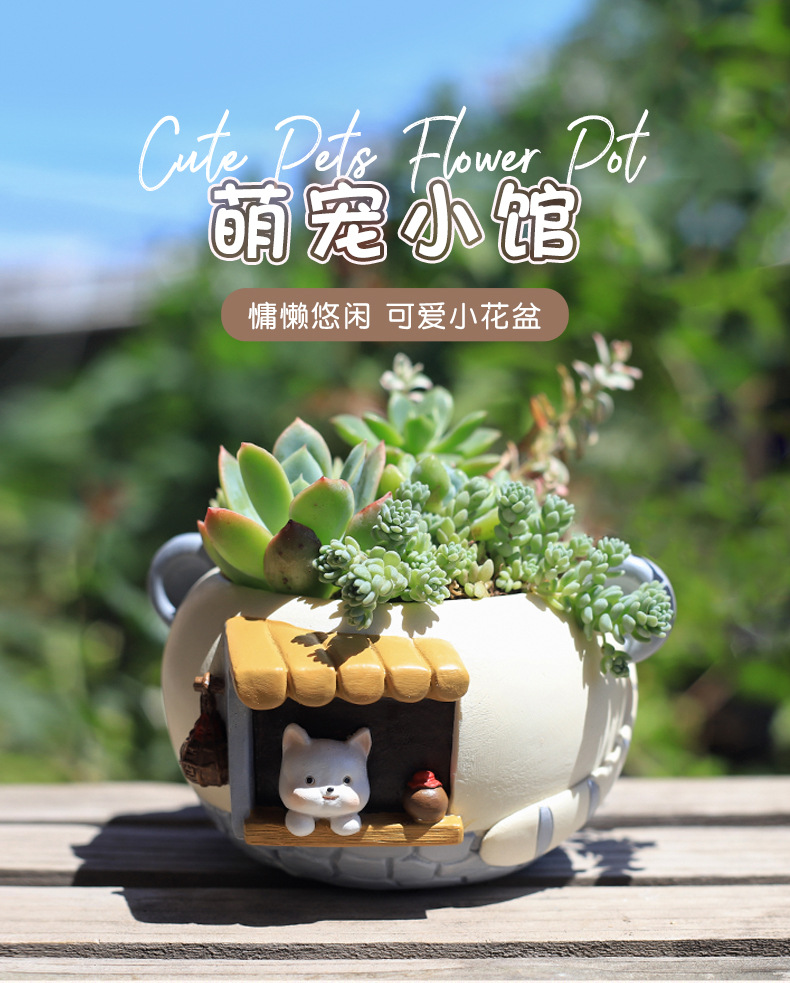 창조적 인 만화 귀여운 애완 동물 다육 질 작은 화분 사무실 발코니 장식 수지 화분 마이크로 풍경 원예 식물 냄비