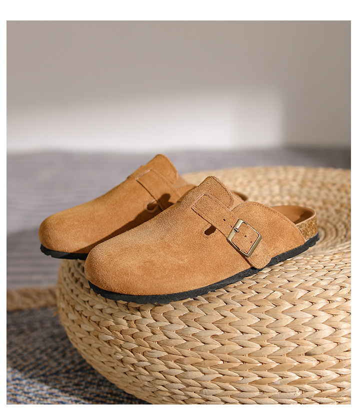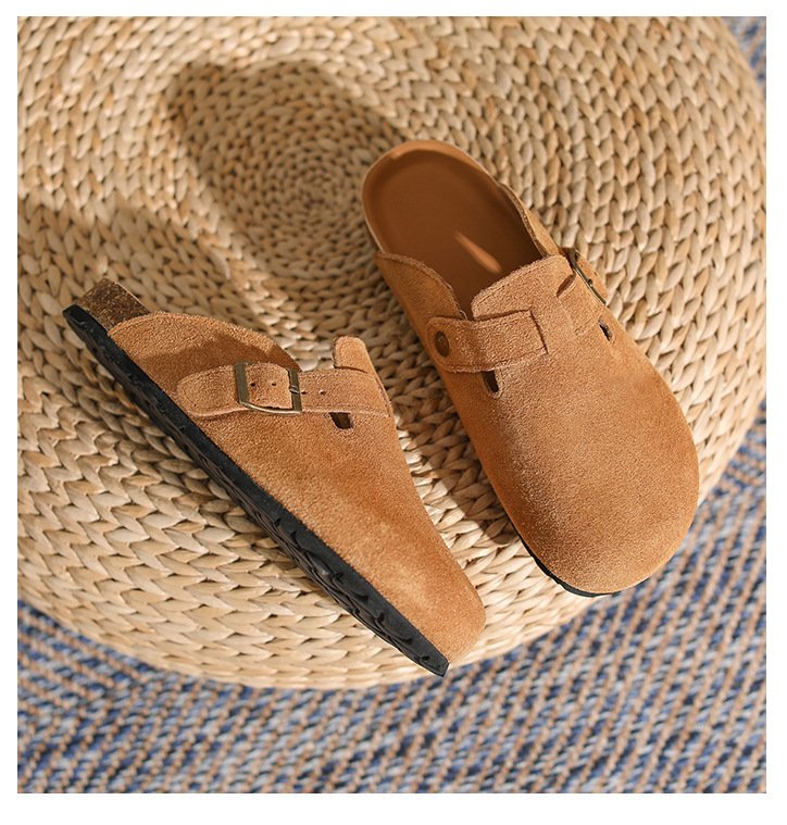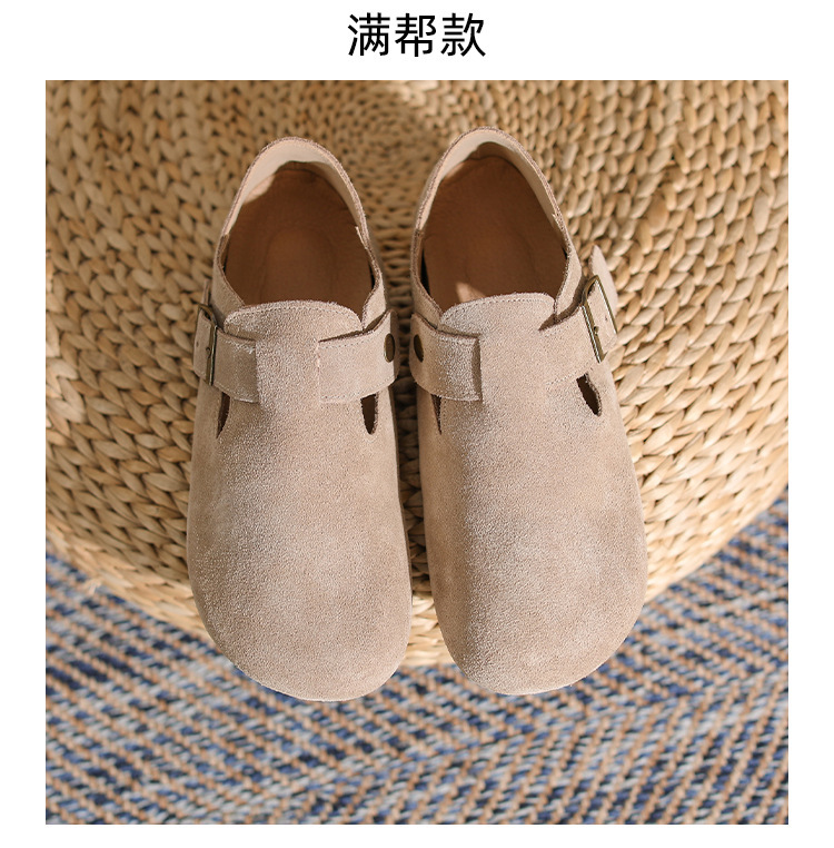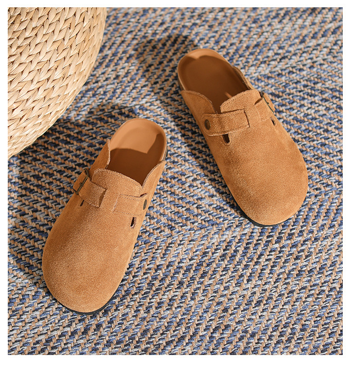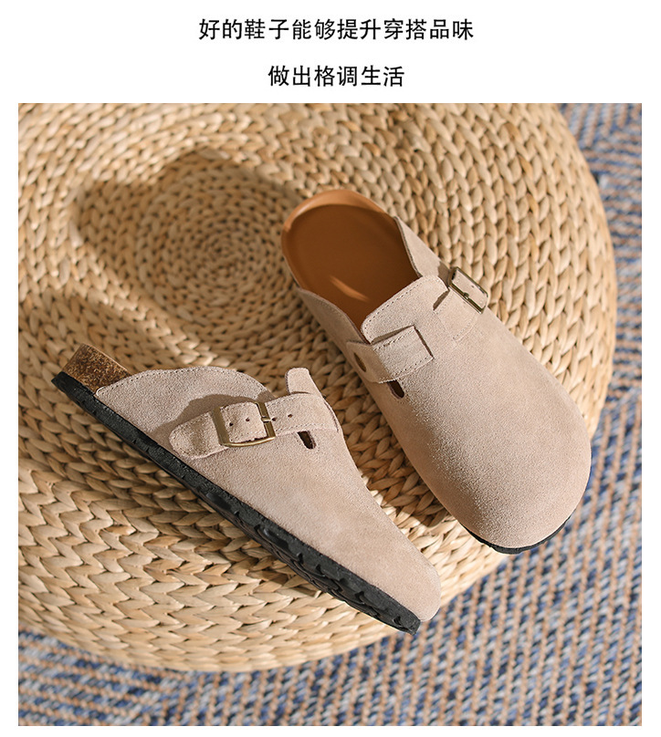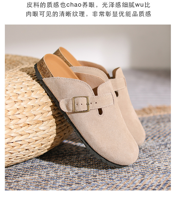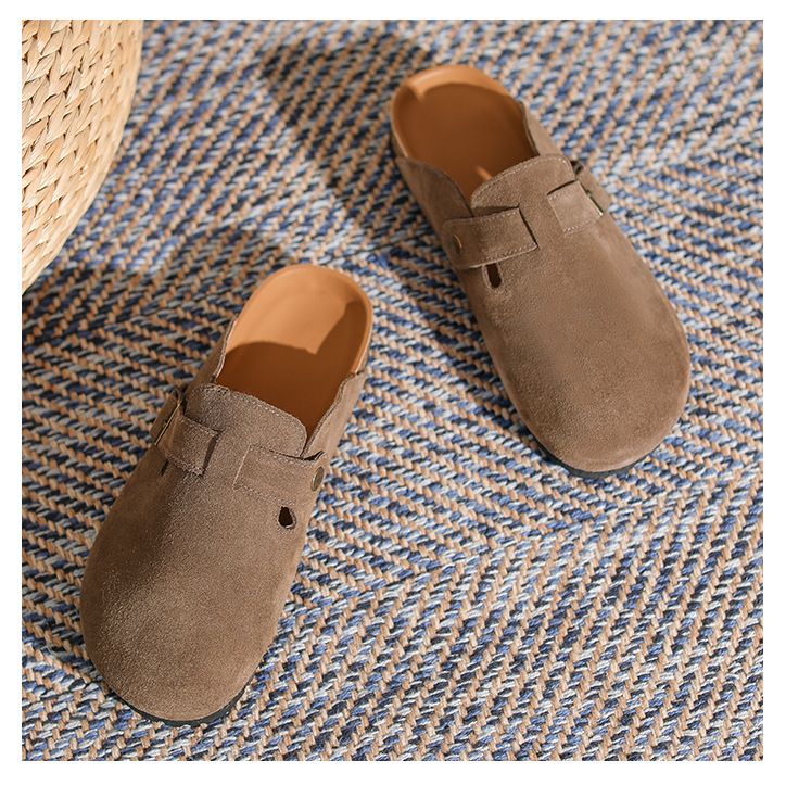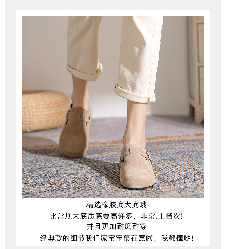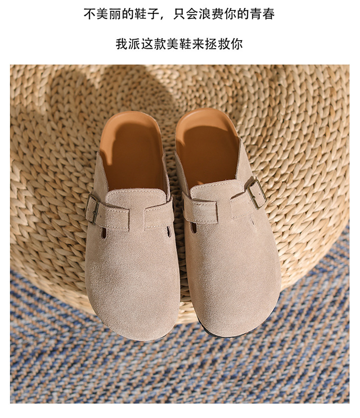 산시 통이 올인클루시브 정품 가죽 게으른 프랑스 스타일 레트로 Baotou 소프트 하단 하프 드래그 원 인 빅 토 슈즈 여성용 보켄 슈즈스토어 가기