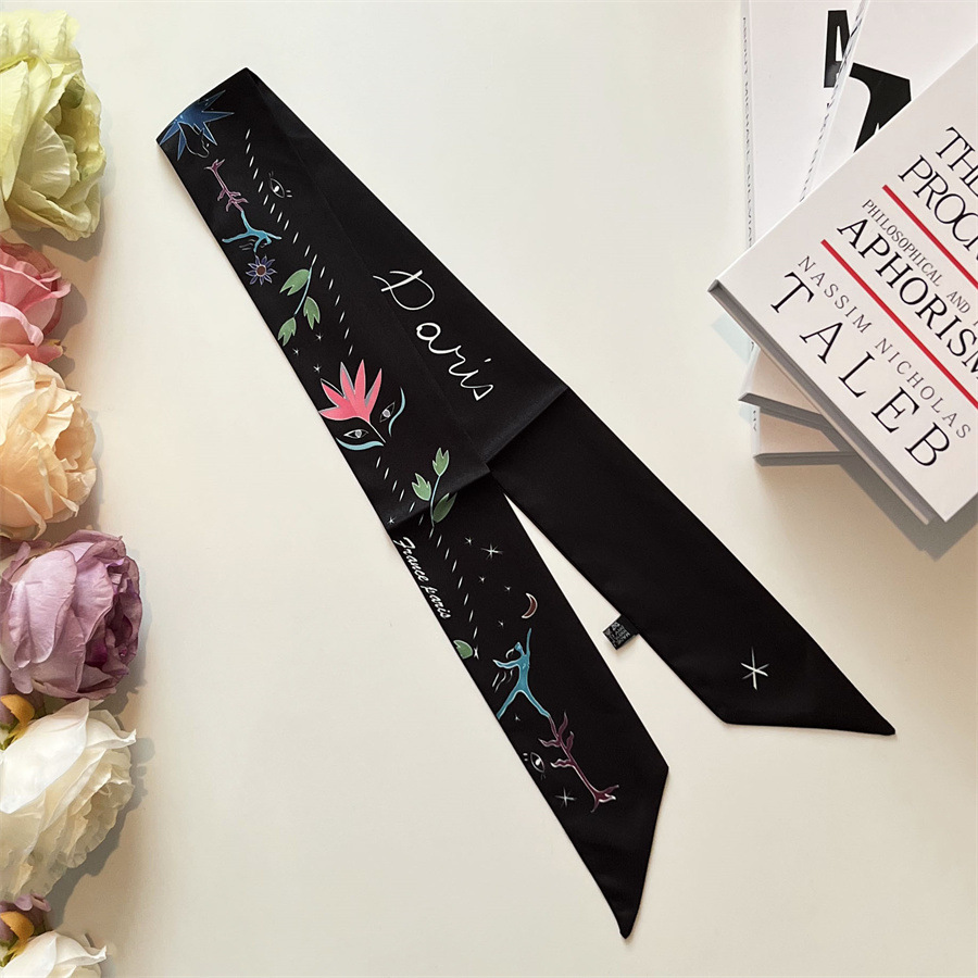 2023 새로운 블랙 모조 실크 능직 실크 작은 리본 스카프 여성용 양면 하이 레벨 타이 스트랩 스카프스토어 가기