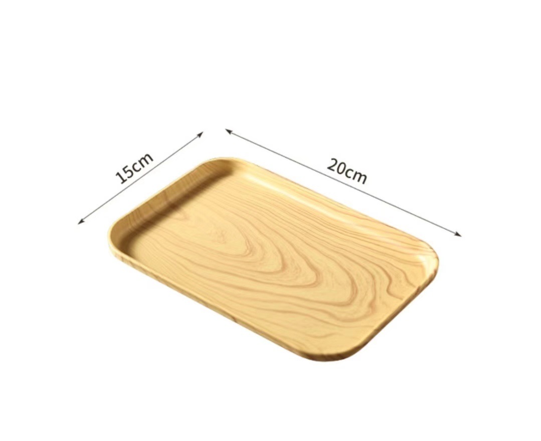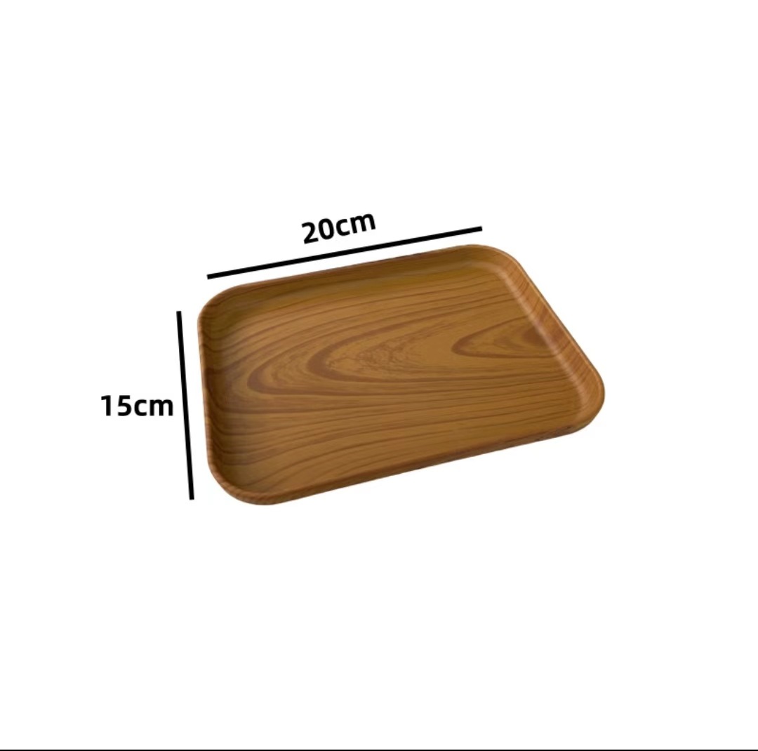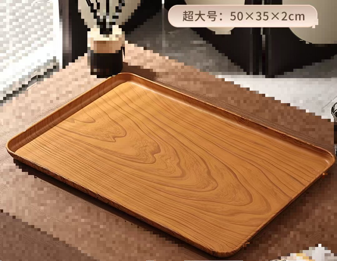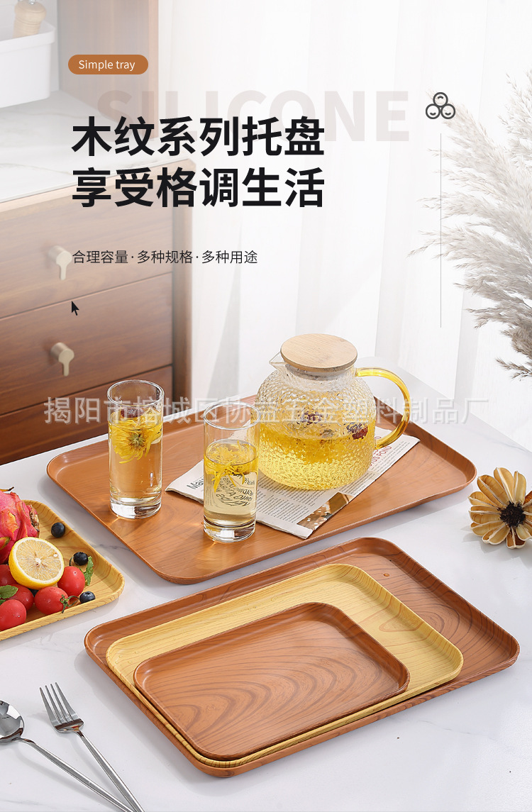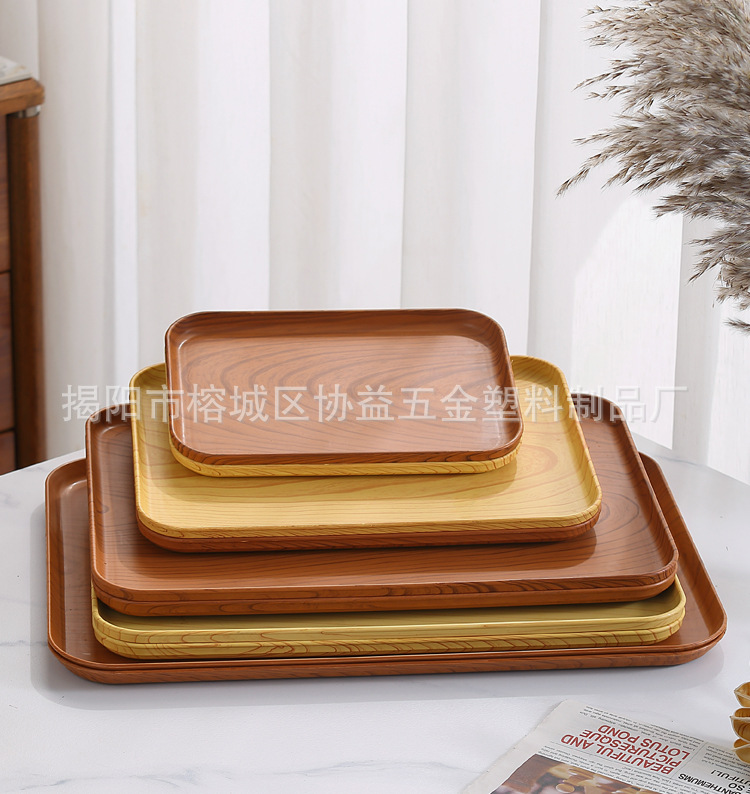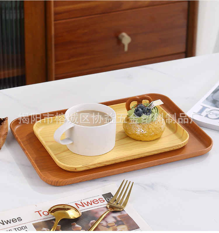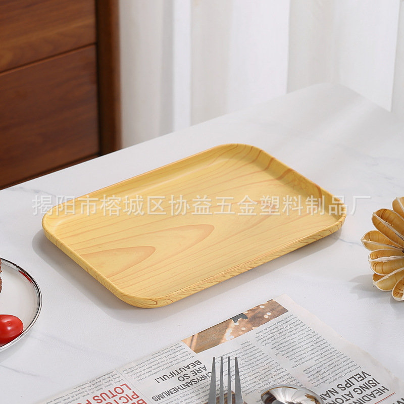 국경 간 항목 고급 모조 우드 그레인 플라스틱 트레이 식사 준비 다과 장식 트레이 과일 트레이 차 세트 바베큐 튀김 끈 대용량 트레이