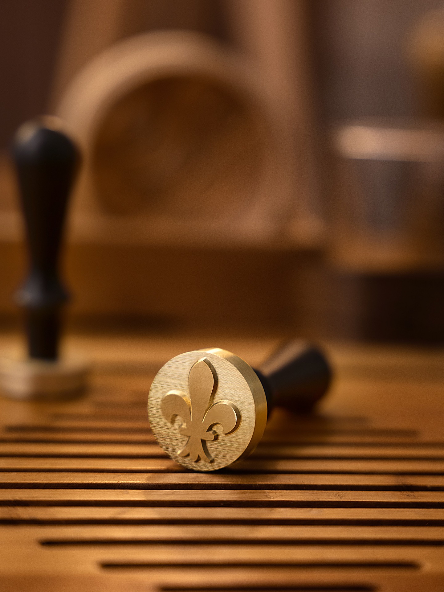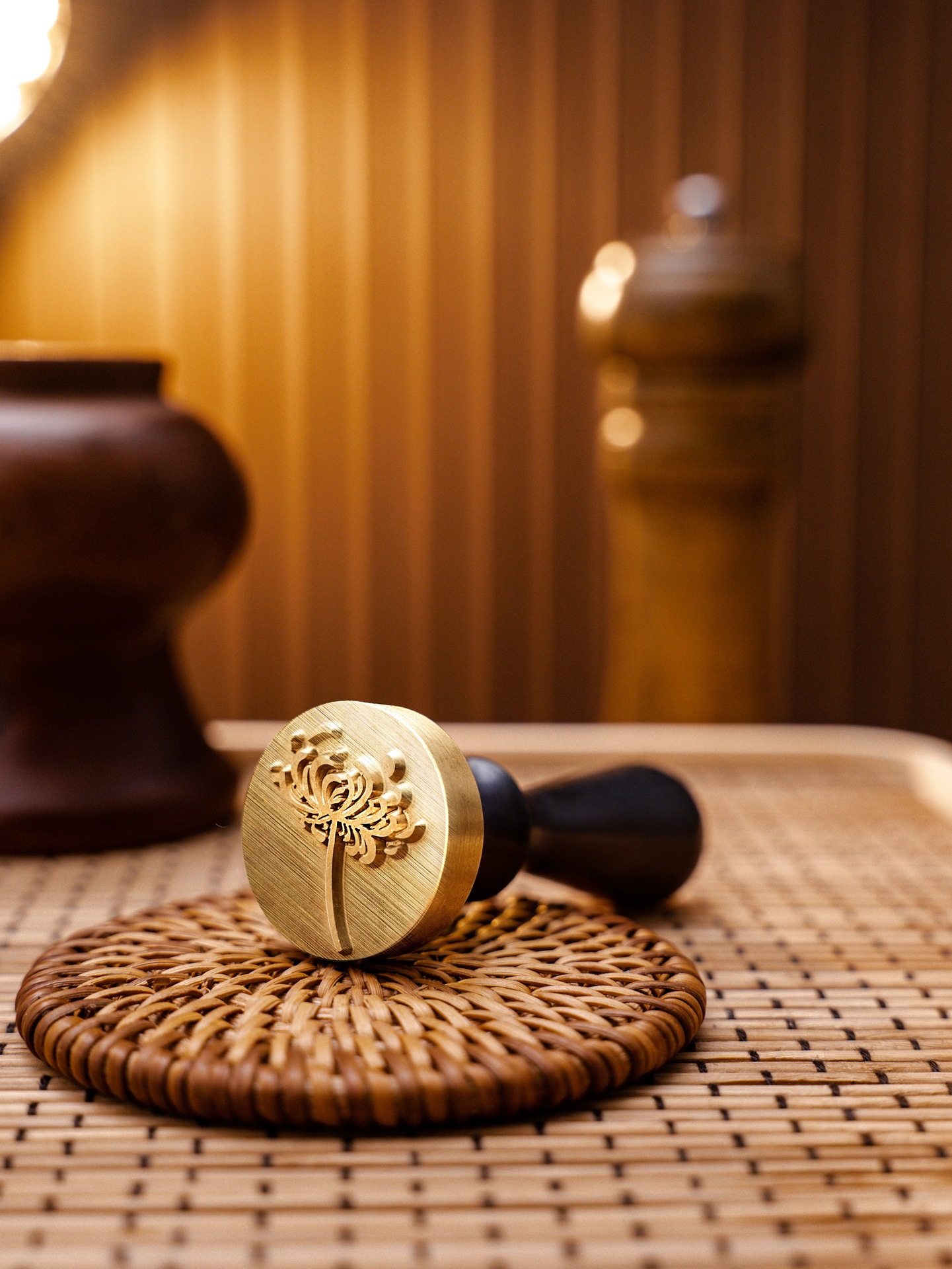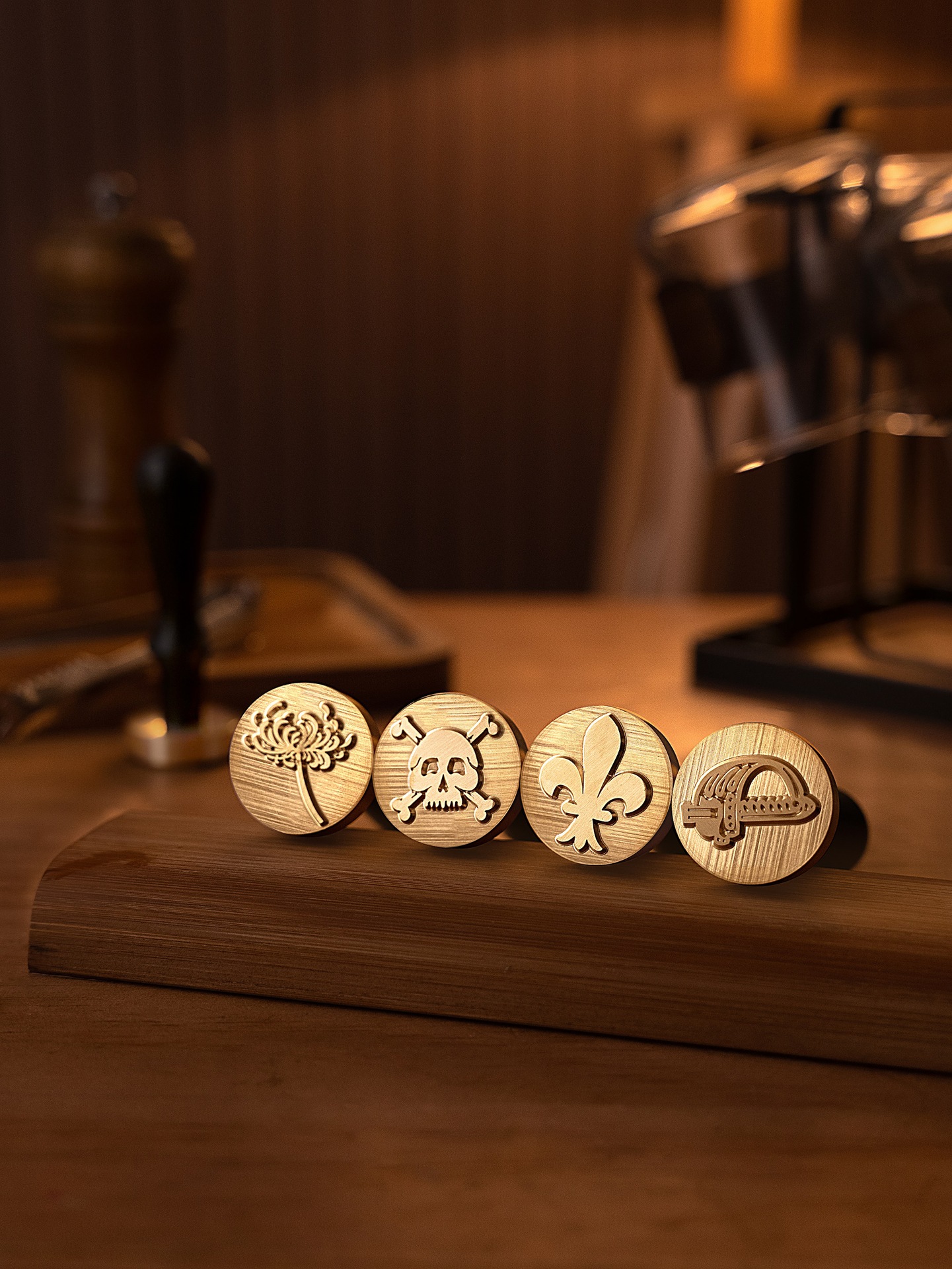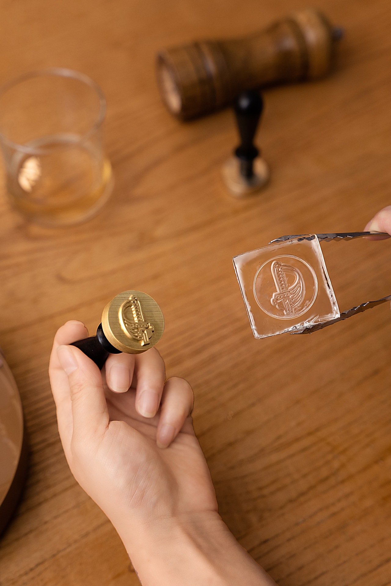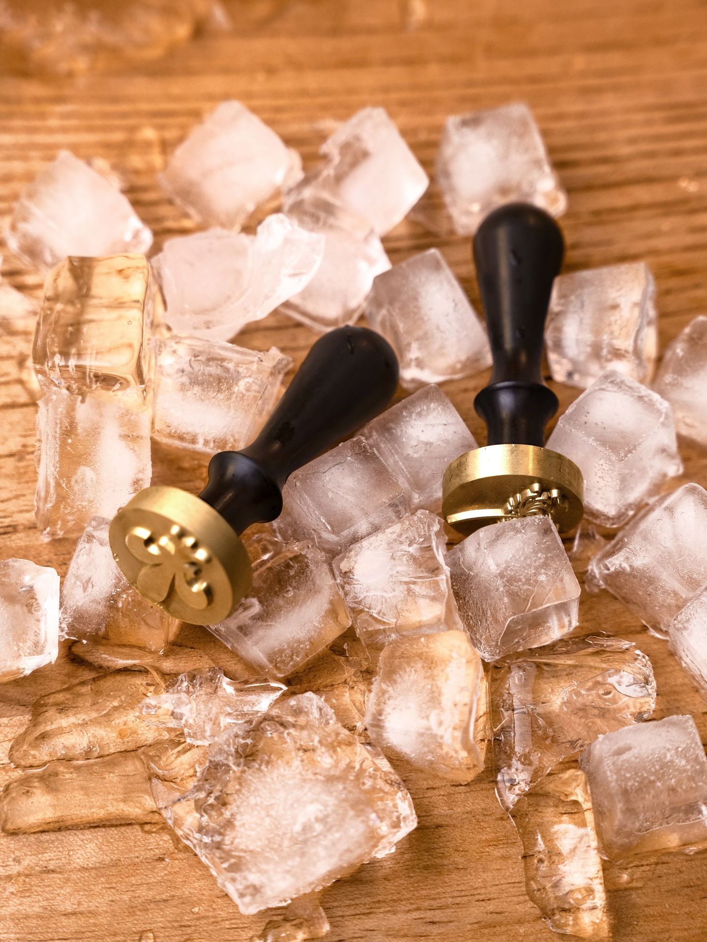 LFGB 3CM 식품 등급 아이스 큐브 케이크 스탬프 아이리스 플라워 퍼플 색상의 히노키 나무 손잡이 아이스 큐브 스탬프스토어 가기