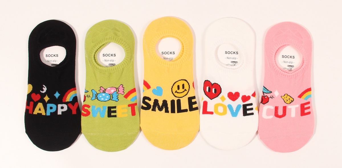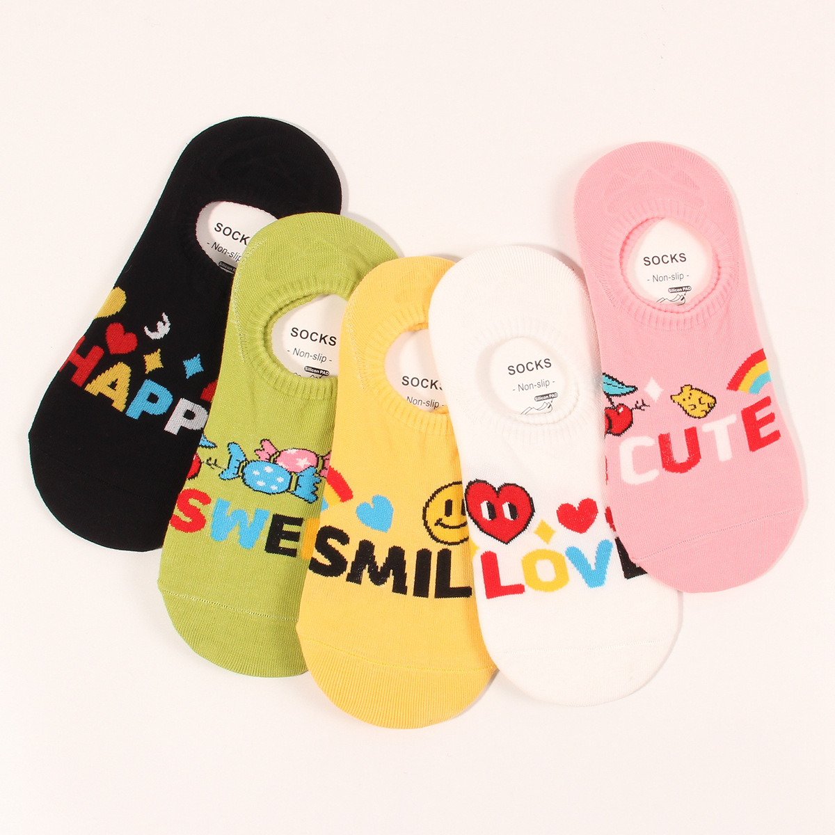 여름 신상품, 보이지 않는 만화 웃는 얼굴 여성용 보트 양말, 희귀하고 통기성이 있고 떨어지지 않고 미끄러지지 않는 귀여운 여성용 얕은 양말