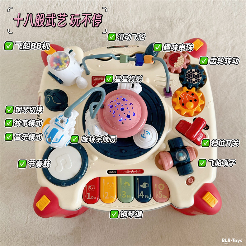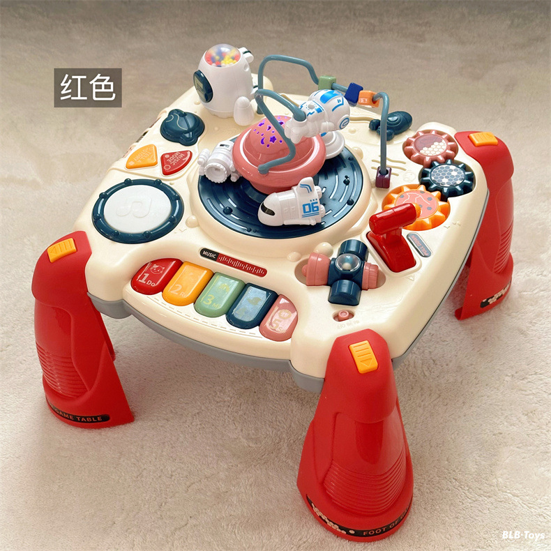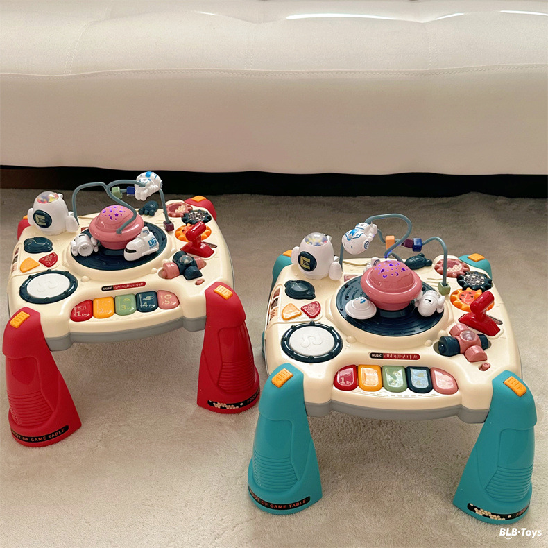 어린이 다기능 게임 테이블 양면 빌딩 블록 테이블 조기 교육 유치원 핸드비트 드럼 빌딩 블록 아기 학습 테이블스토어 가기