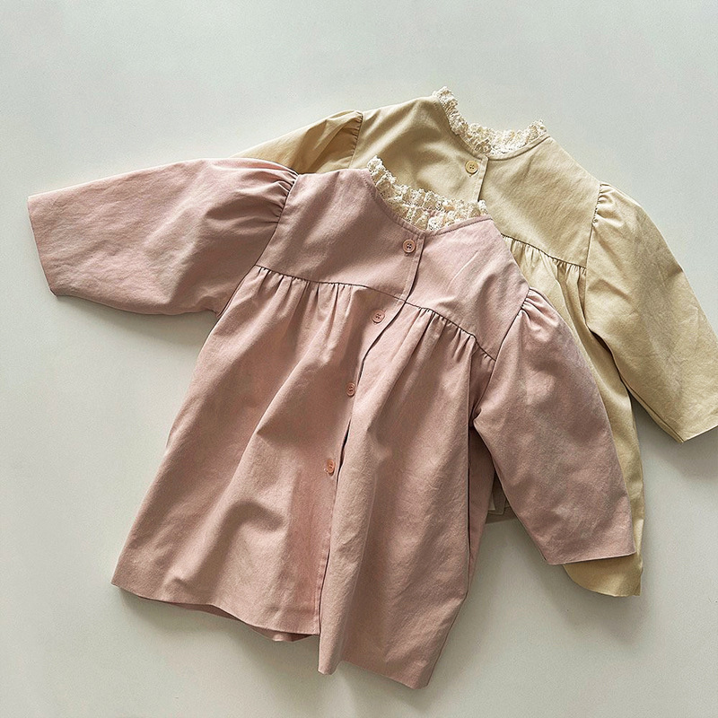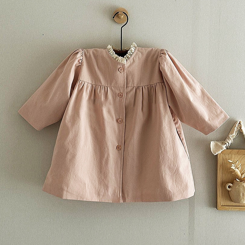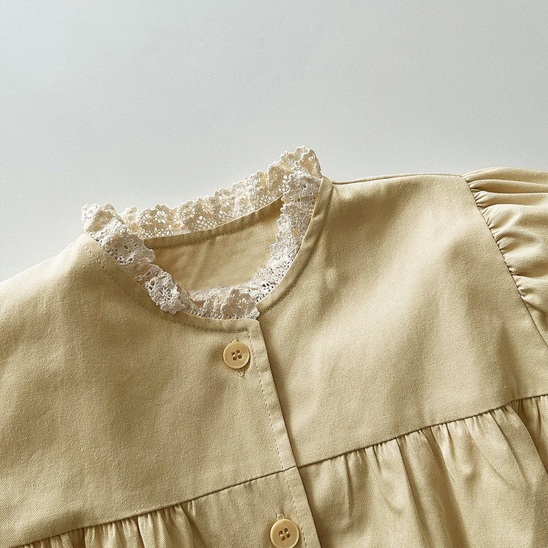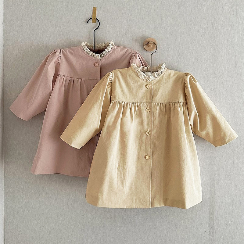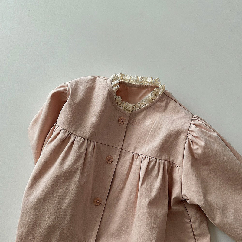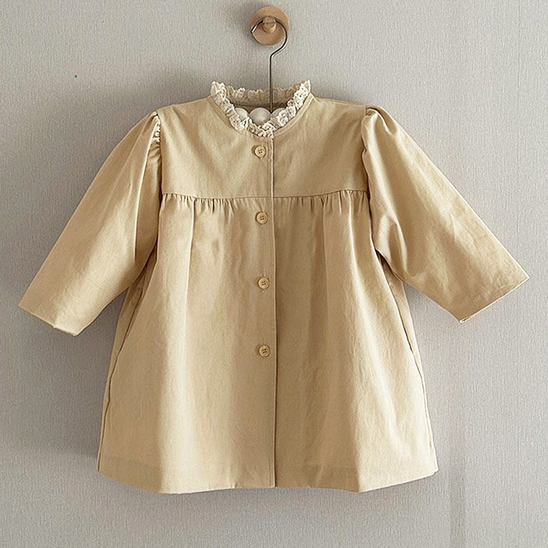 ins 한국판 여아용 봄 신상 코트, 세련된 레이스 칼라, 싱글 버튼 가디건, 베이비돌 셔츠, 윈드브레이커