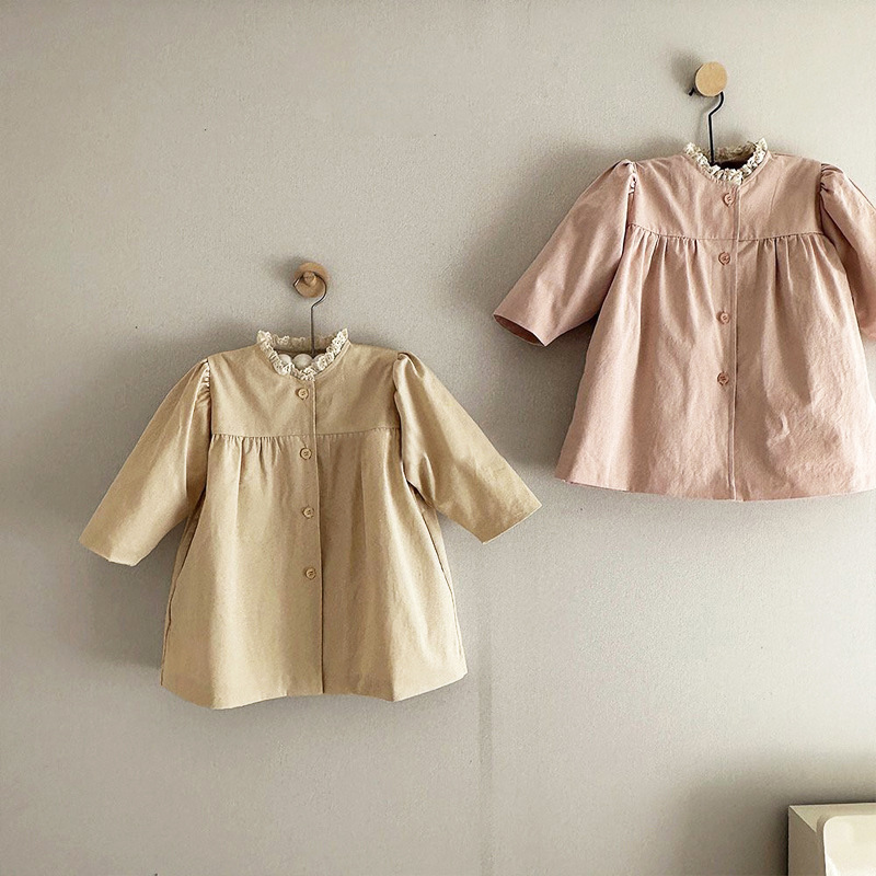 ins 한국판 여아용 봄 신상 코트, 세련된 레이스 칼라, 싱글 버튼 가디건, 베이비돌 셔츠, 윈드브레이커스토어 가기