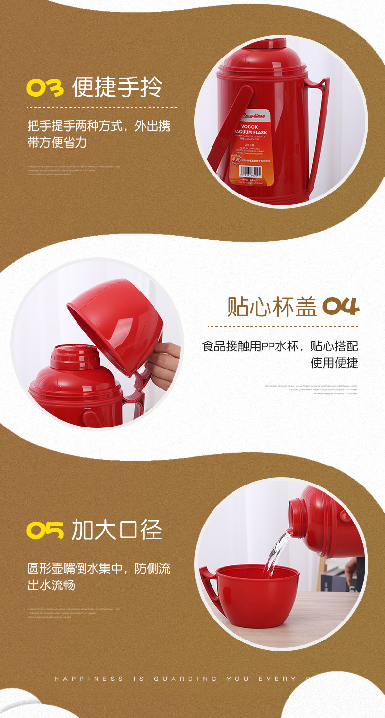 VOCCK 베트남 스타일 물병 가정용 유리 내부 PP 보온병 대용량 휴대용 물병 온수병