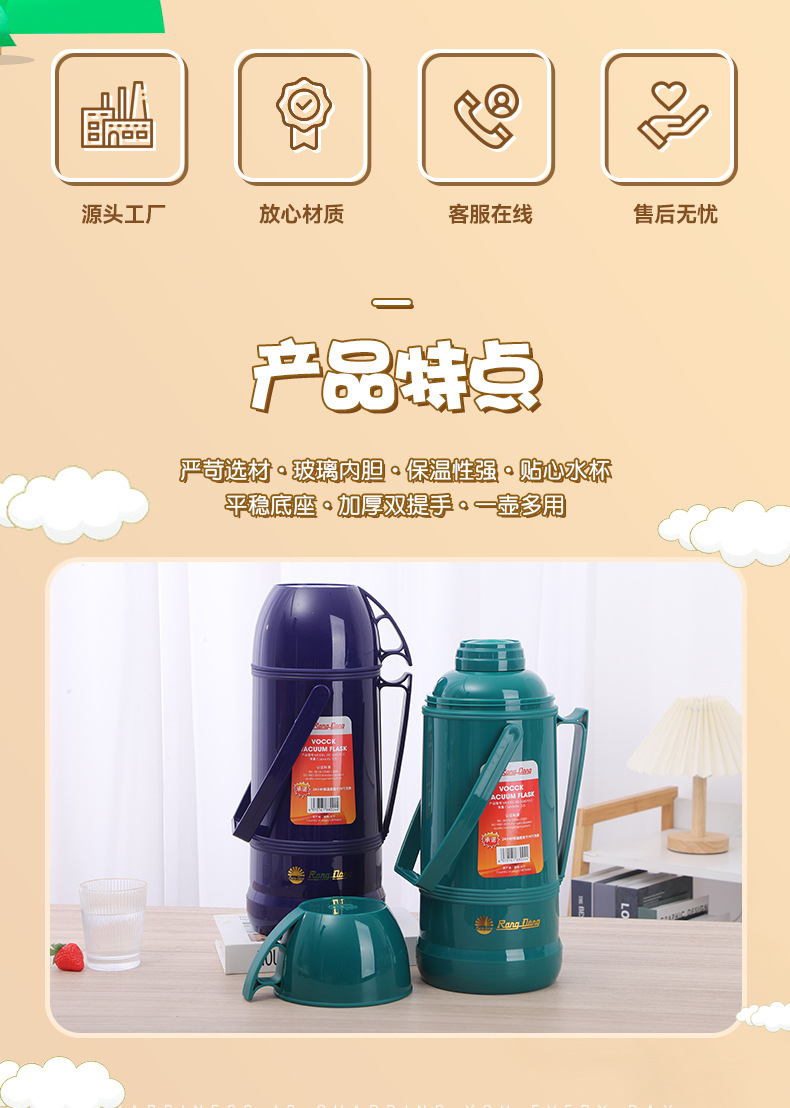 VOCCK 베트남 스타일 물병 가정용 유리 내부 PP 보온병 대용량 휴대용 물병 온수병스토어 가기