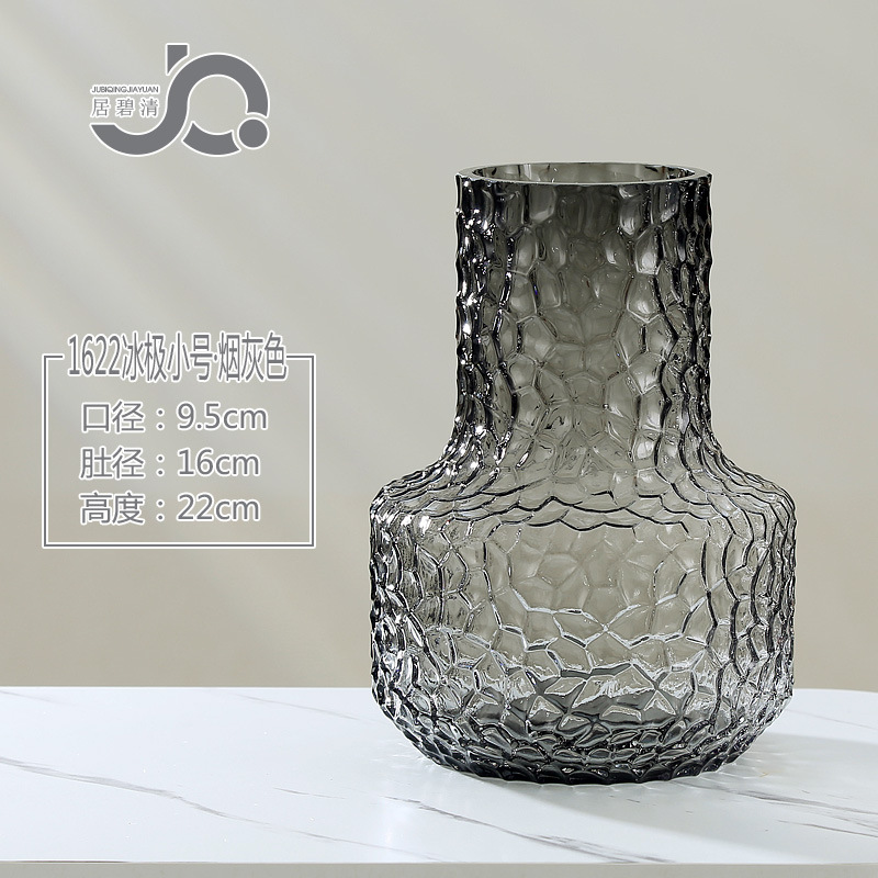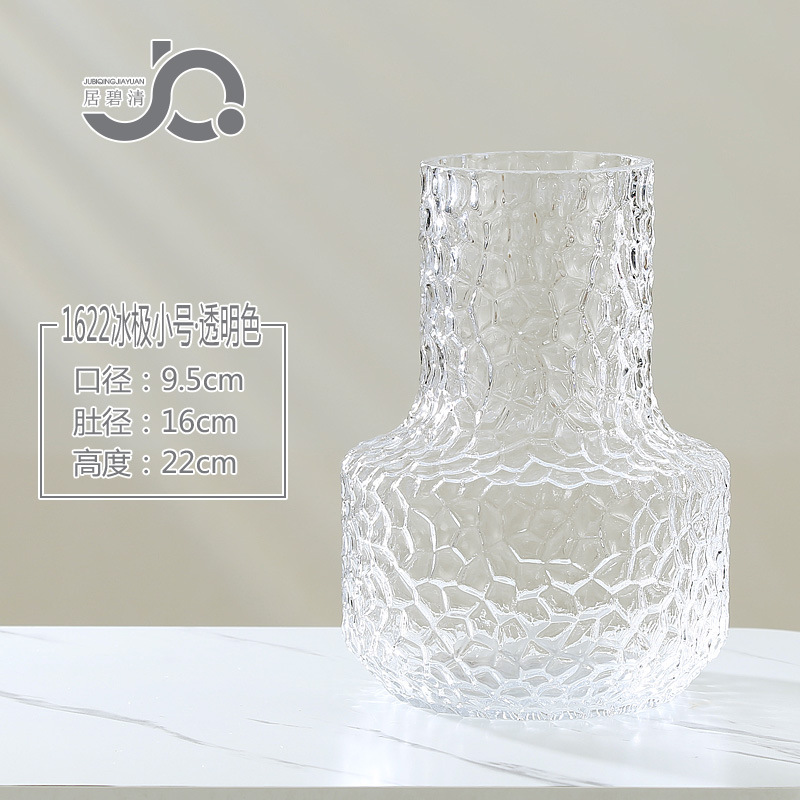 북유럽 간단한 해머 패턴 씰 얼음 극 유리 꽃병 식탁 홈 수경 릴리 로즈 꽃 장식 꽃 장치스토어 가기