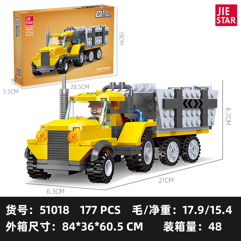공장 도매 Chenghai 장난감 Jie Xing 빌딩 블록 국경 간 신제품 건설 DIY 조립 롤러 엔지니어링 차량 완구