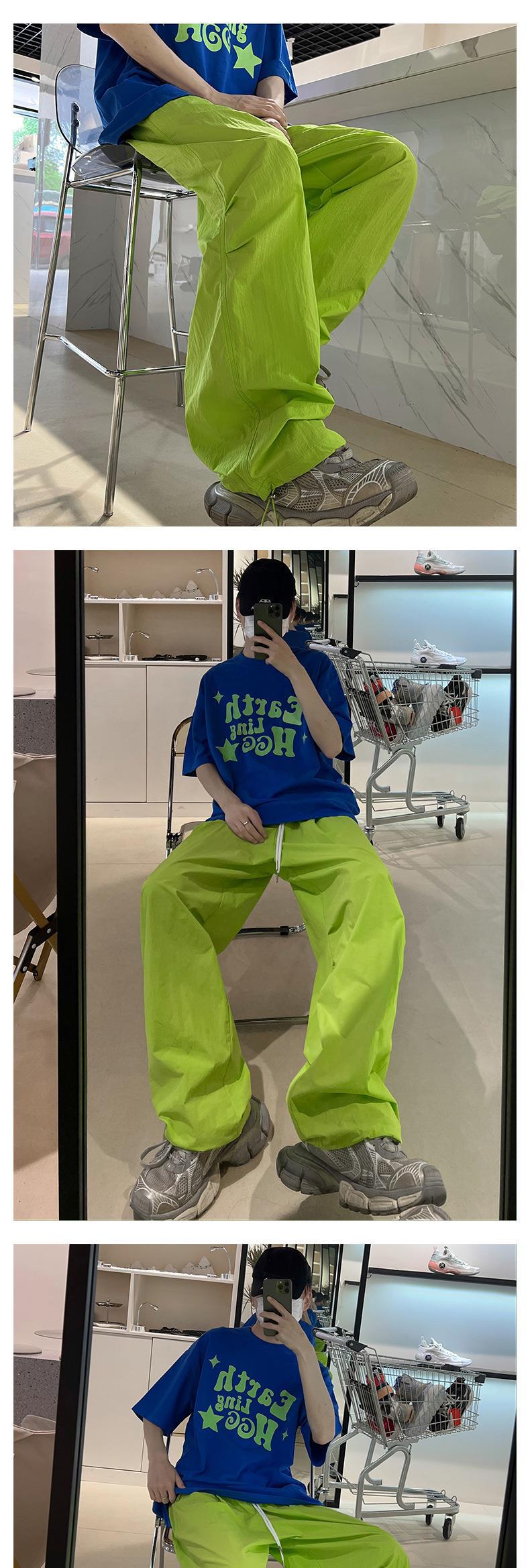 2023 새로운 멀티 컬러 방수 속건 바지 얇은 모든 경기 학생 느슨한 폭발 트렌디 한 남성과 여성 커플 슬리밍스토어 가기