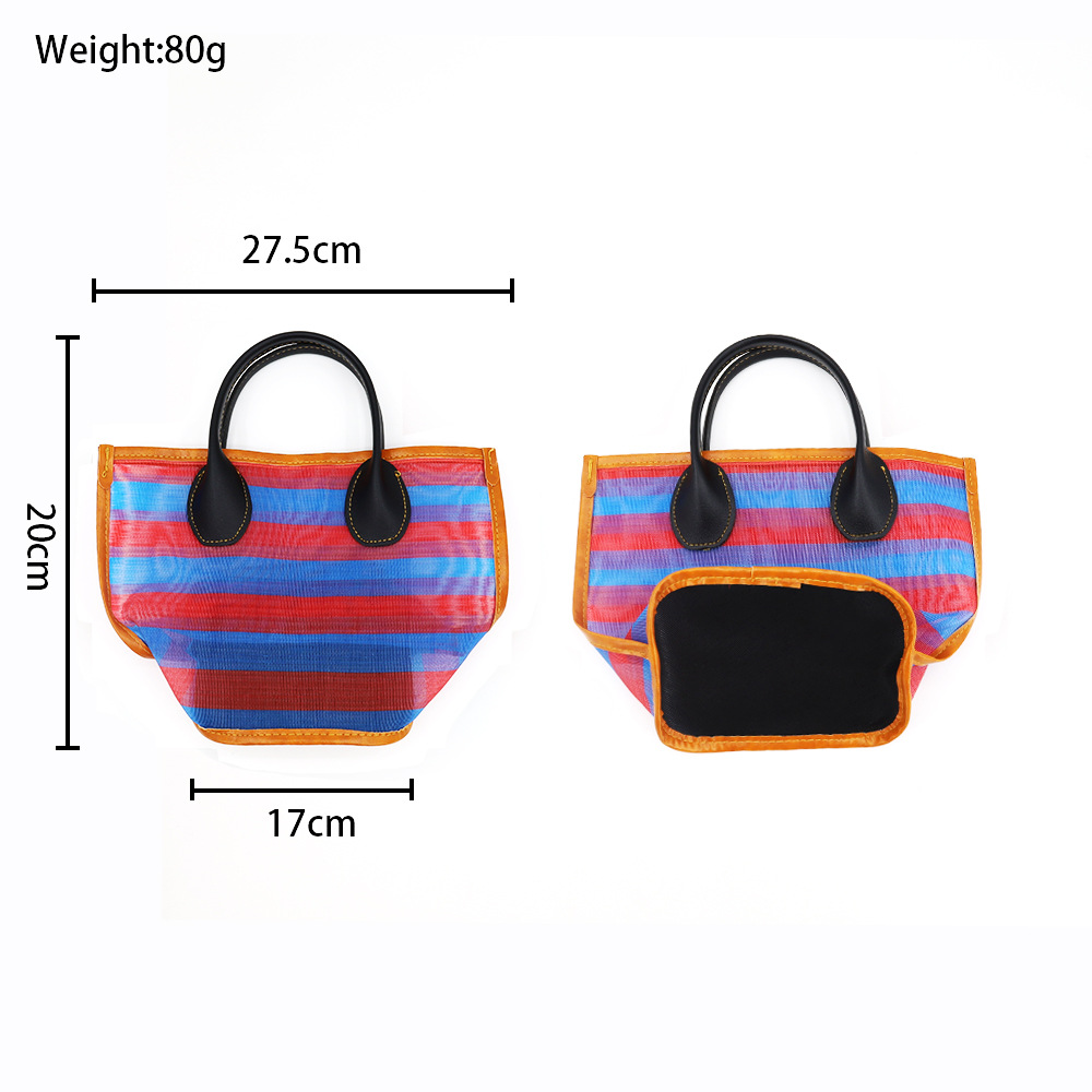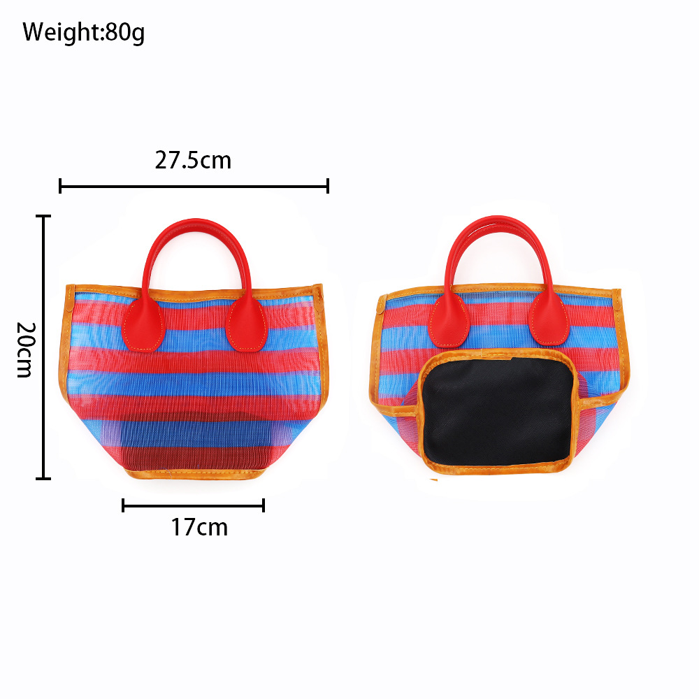 • 스마일 핸드백 - 빨간색과 파란색 두꺼운 스트립 - 빨간색 손잡이