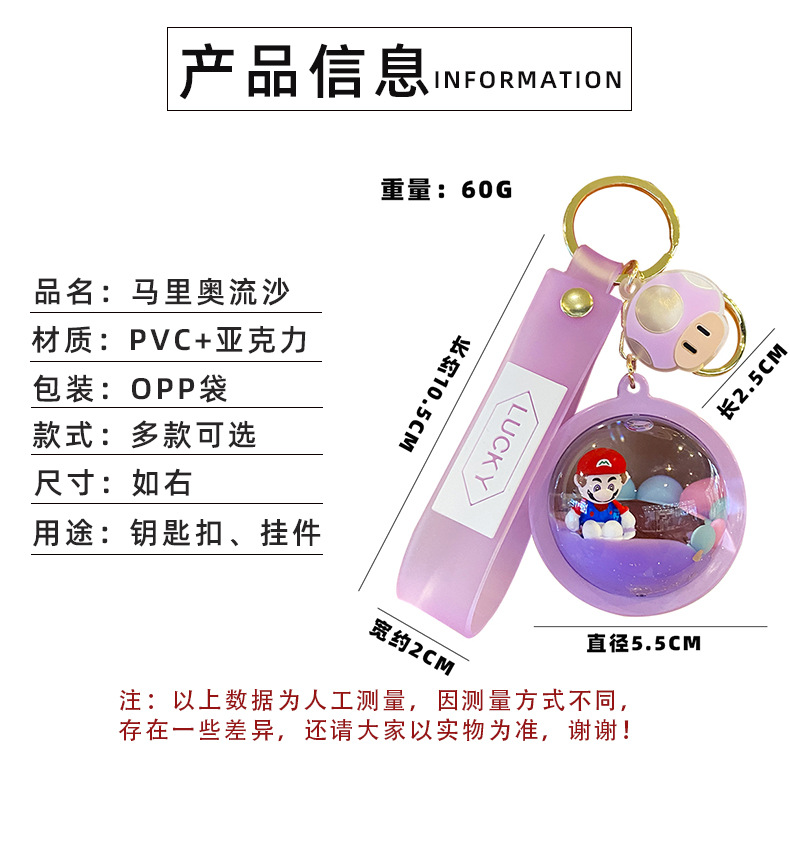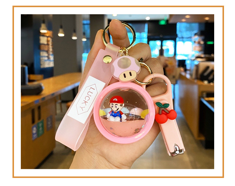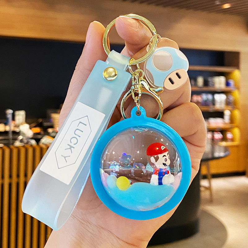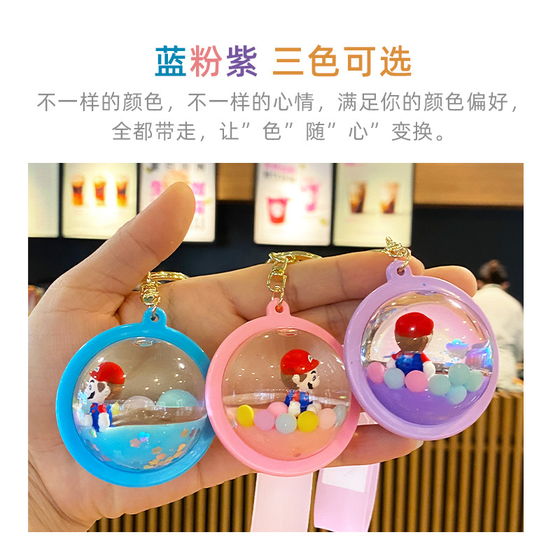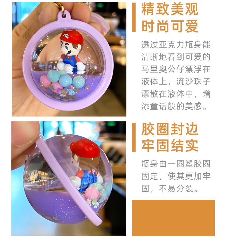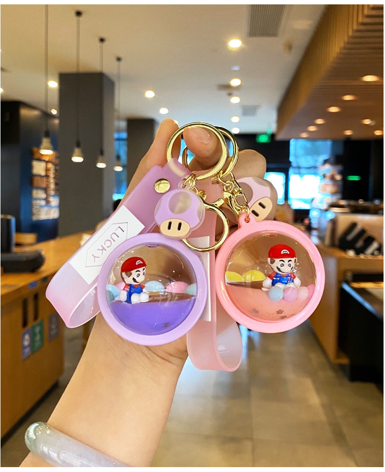 슈퍼 메리 오일 퀵 샌드 키 체인 여성 절묘한 귀여운 마리오 책가방 펜던트 커플 열쇠 고리 도매스토어 가기