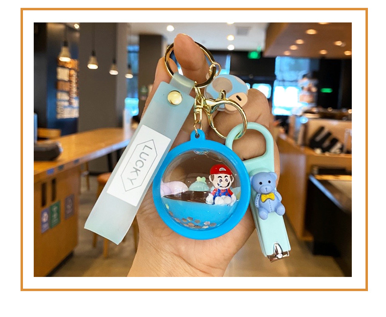 슈퍼 메리 오일 퀵 샌드 키 체인 여성 절묘한 귀여운 마리오 책가방 펜던트 커플 열쇠 고리 도매