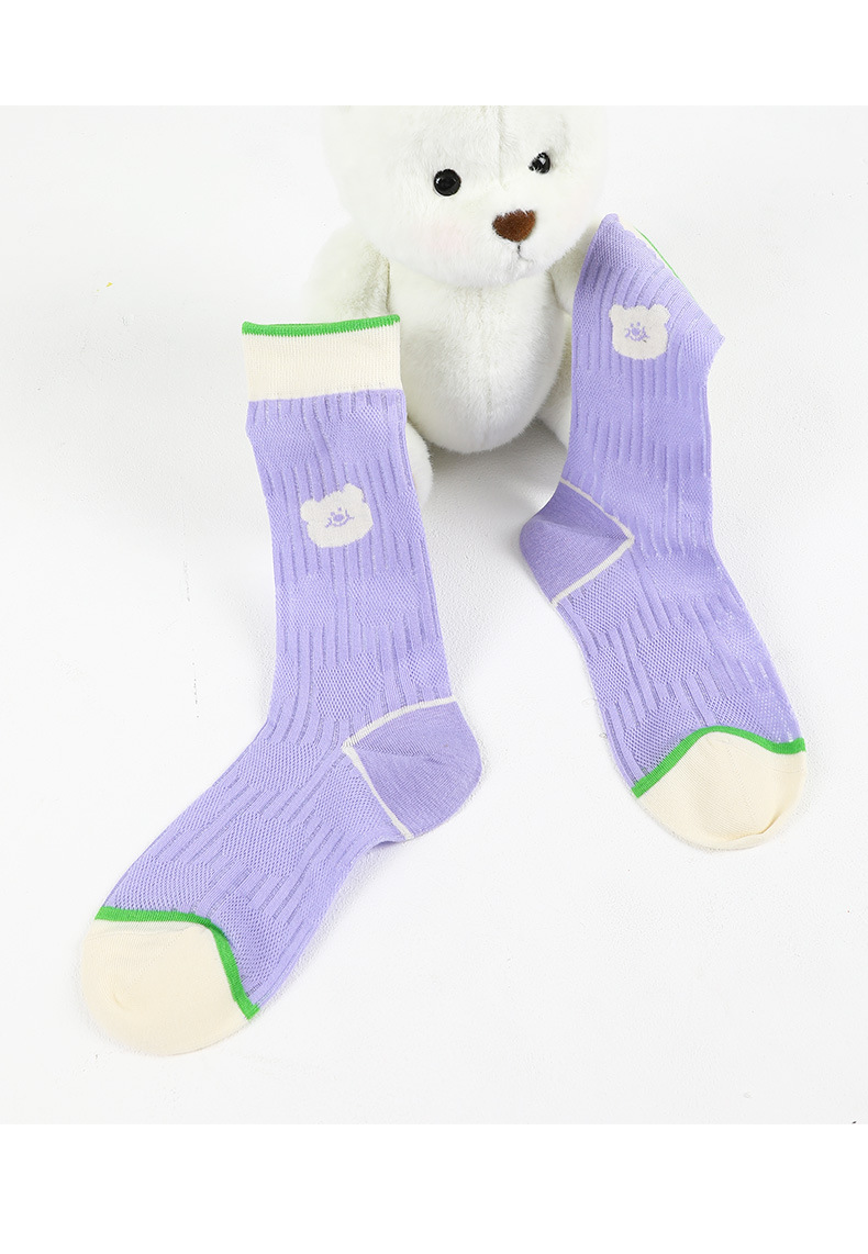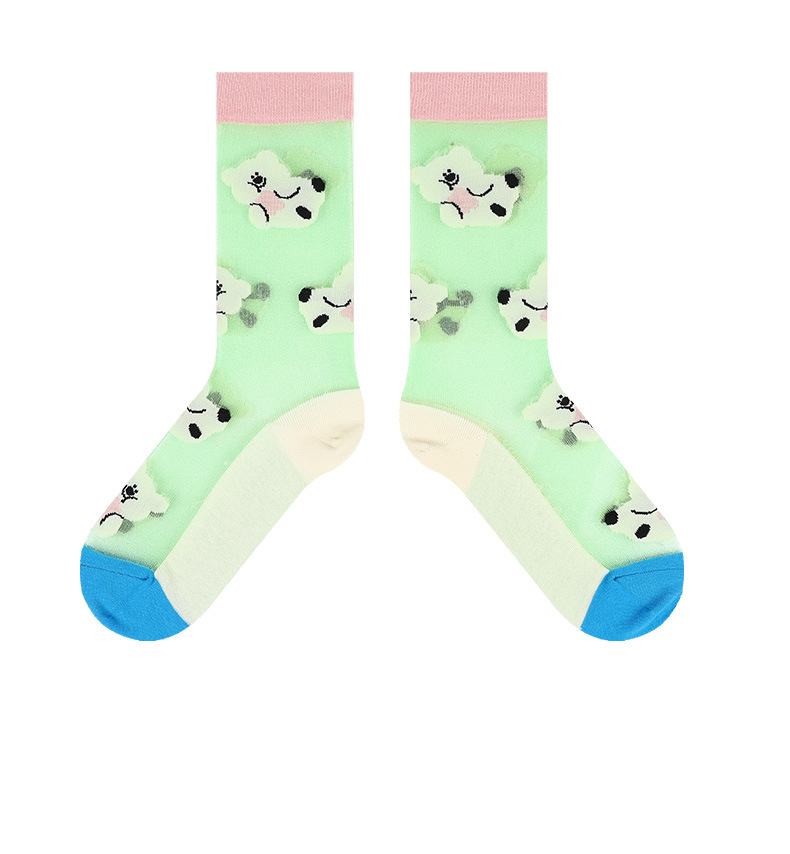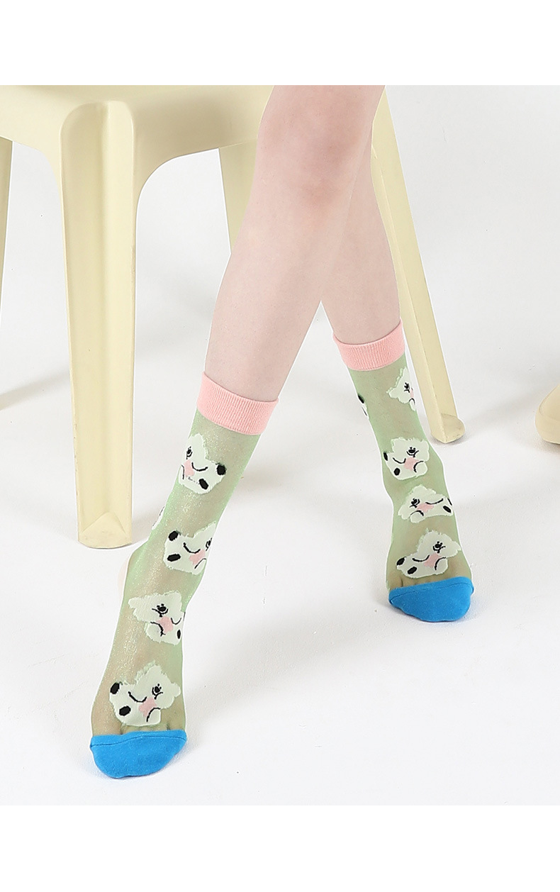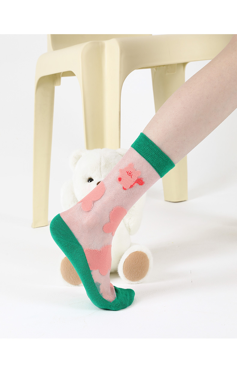 DAMAHOOV 오리지널 만화 일러스트 양말 여성용 여름 초박형 귀여운 곰 중간 길이 양말 유리 실크 면 양말스토어 가기