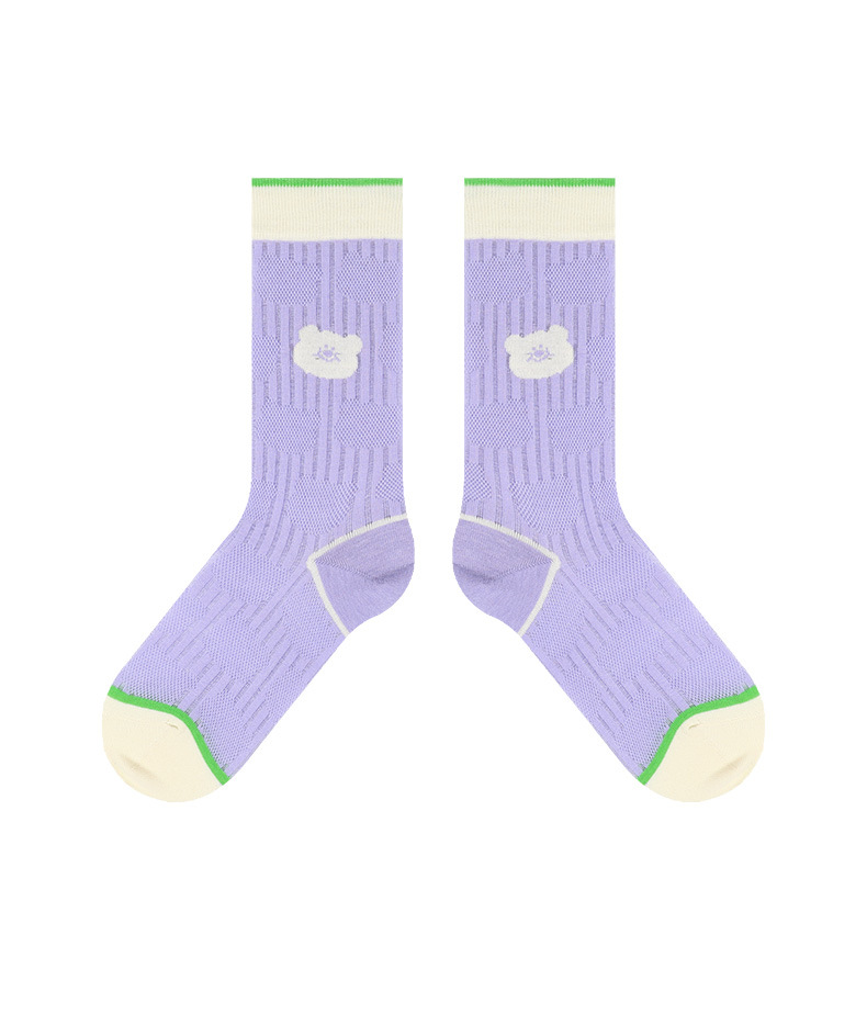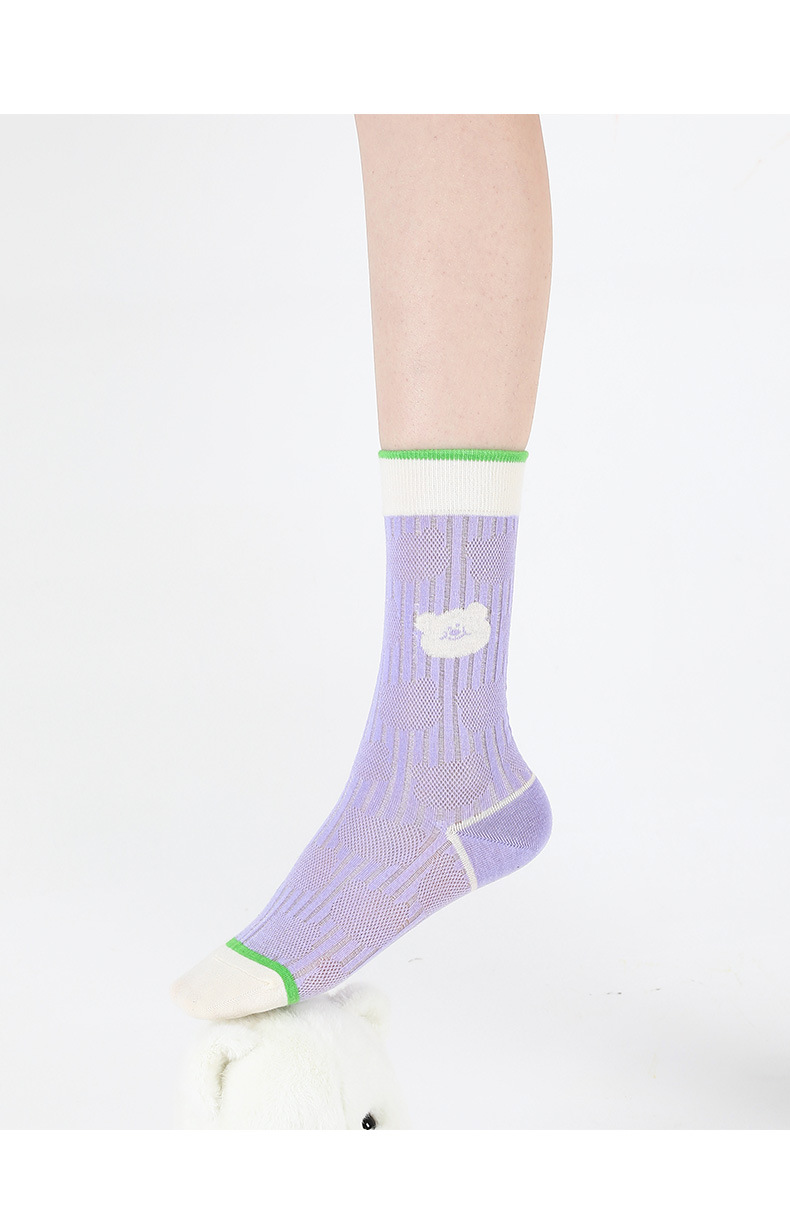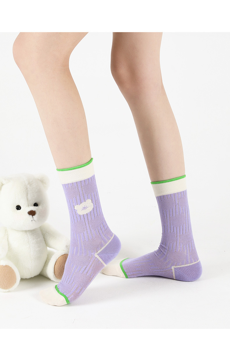 DAMAHOOV 오리지널 만화 일러스트 양말 여성용 여름 초박형 귀여운 곰 중간 길이 양말 유리 실크 면 양말