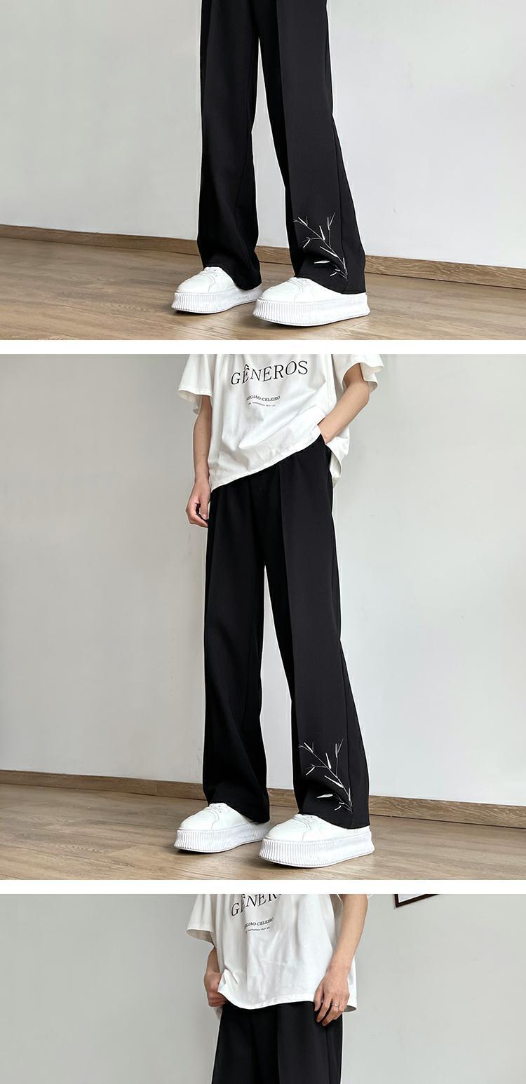중국 스타일 새로운 중국 자수 바지 남성과 여성의 여름 얇은 스트레이트 다리 바지 커플의 처진 아이스 실크 캐주얼 바지