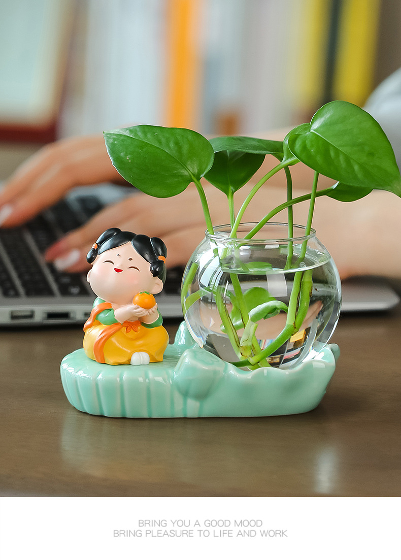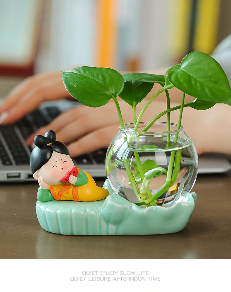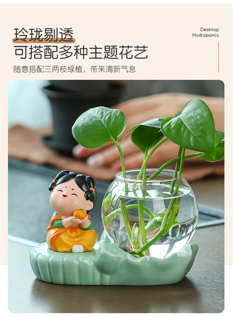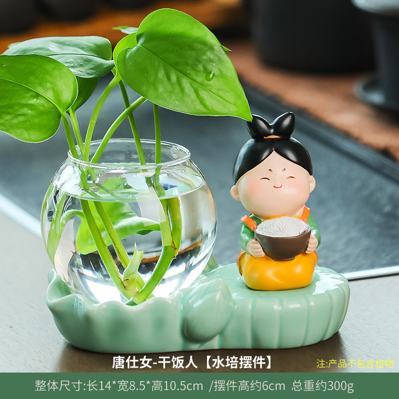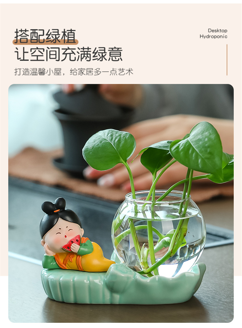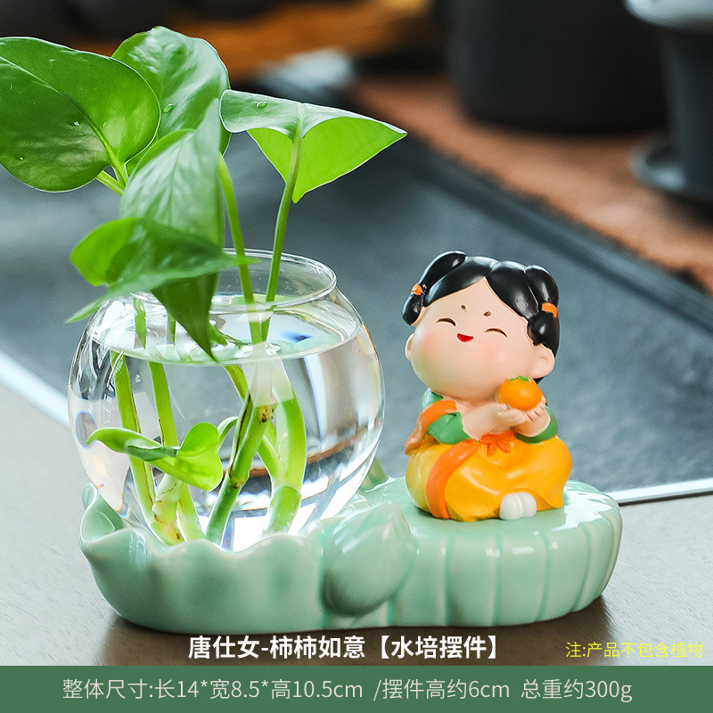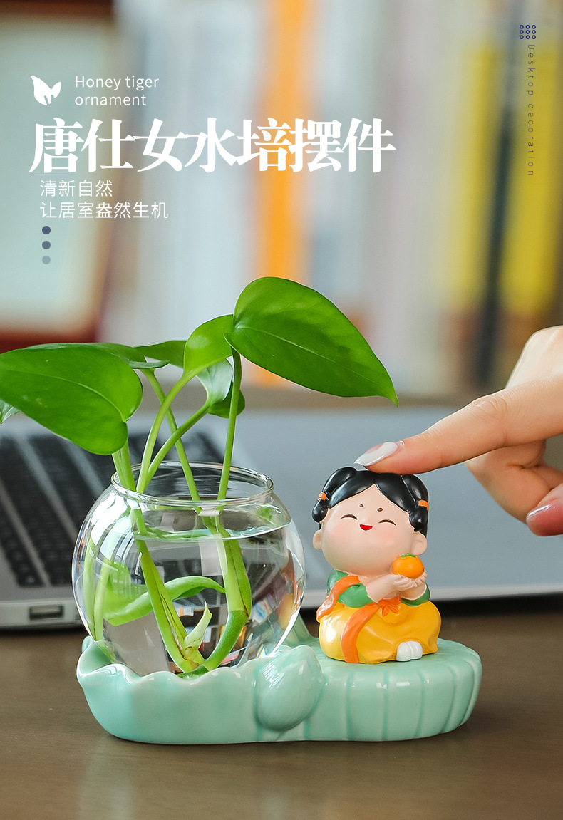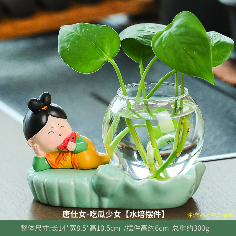 크리에이 티브 중국 스타일 당나라 레이디 청자 수경 꽃병 유리 데스크탑 장식품 홈 장식 녹색 장미 물 꽃 모금 장치스토어 가기