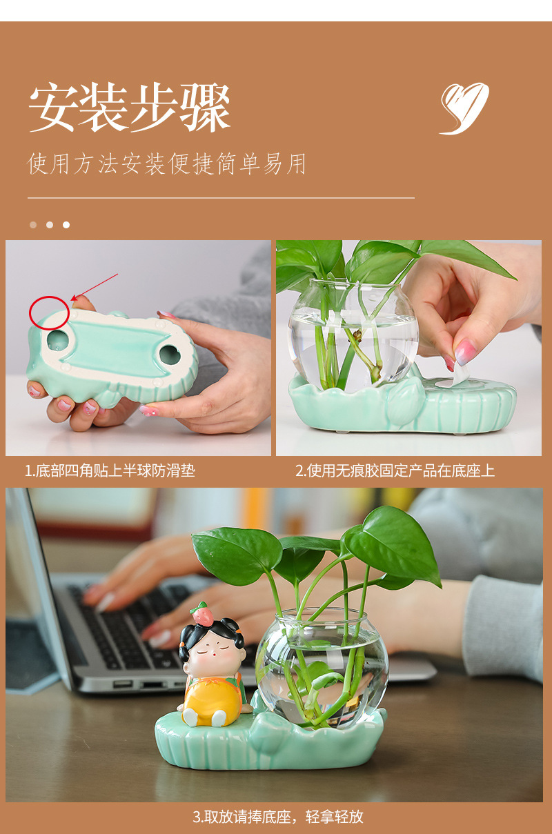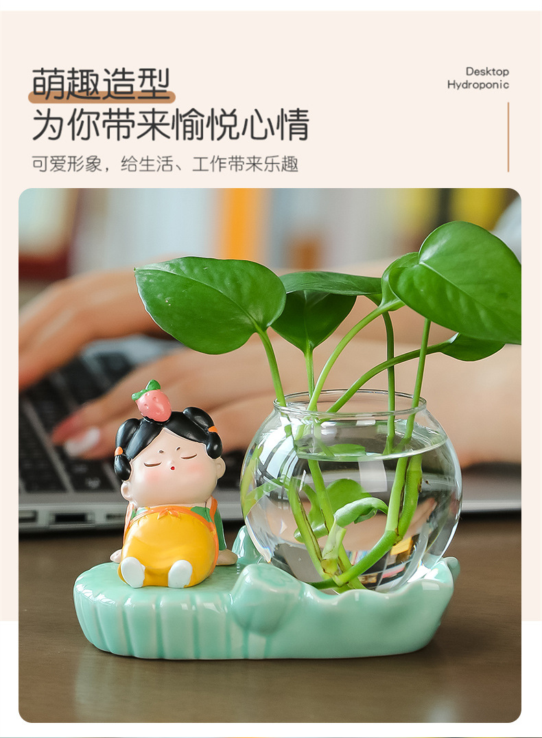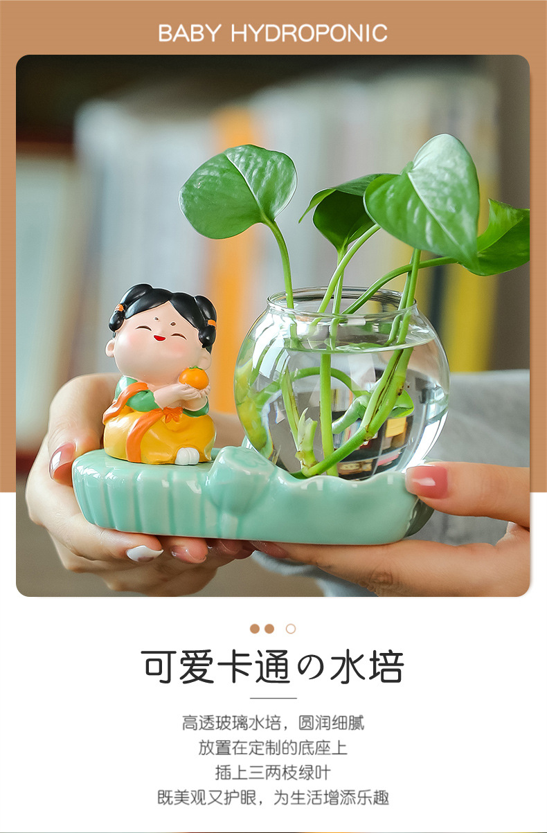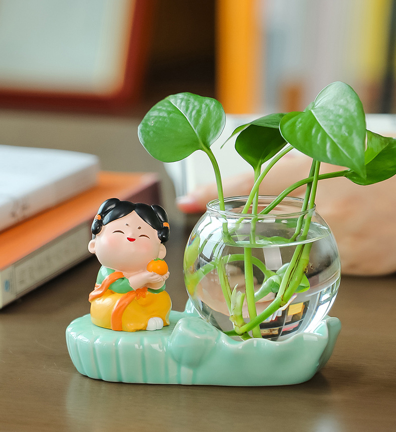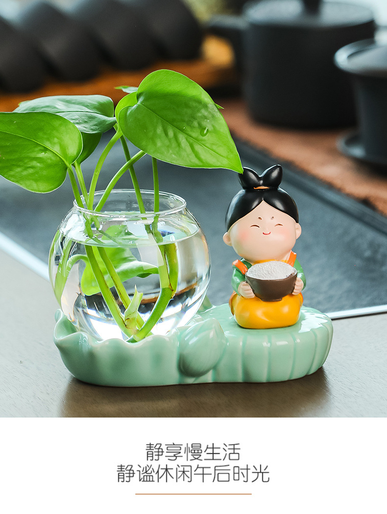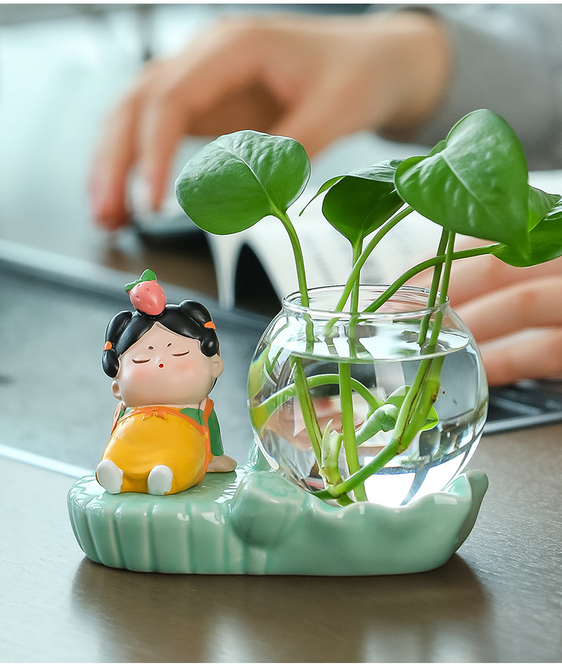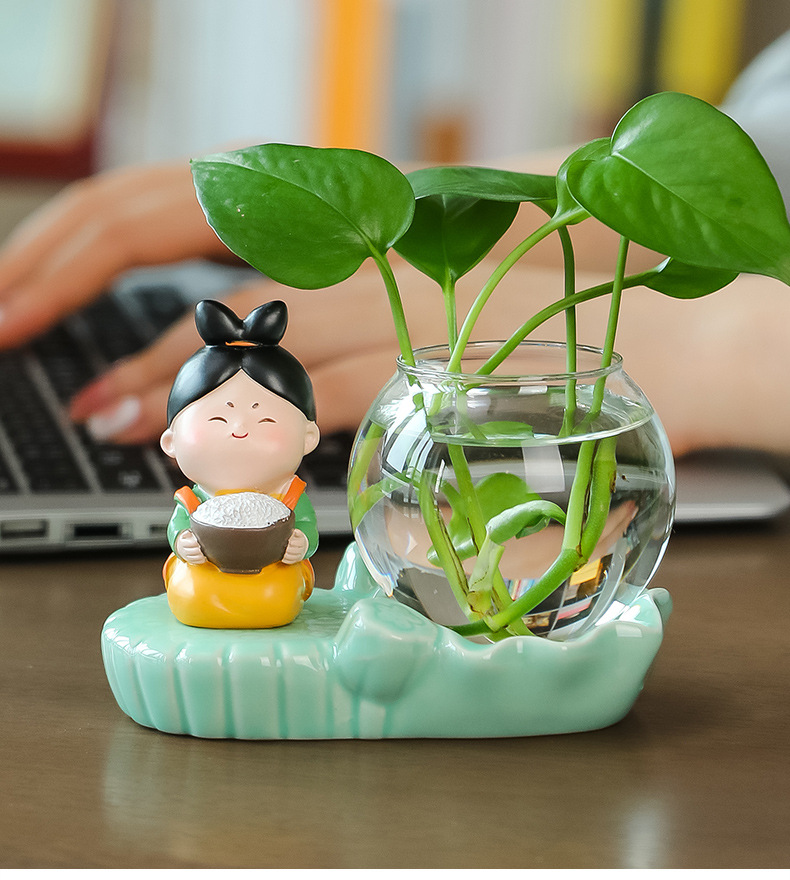 크리에이 티브 중국 스타일 당나라 레이디 청자 수경 꽃병 유리 데스크탑 장식품 홈 장식 녹색 장미 물 꽃 모금 장치스토어 가기