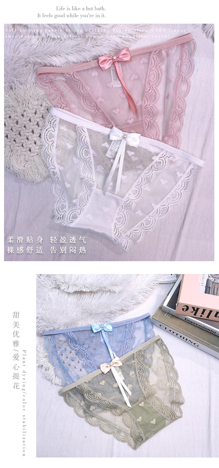 일본식 섹시한 레이스 여성 속옷 여자의 가벼운 유럽 스타일 술 높은 분할 순수 욕망 자카드 메쉬 브리프 여성용스토어 가기