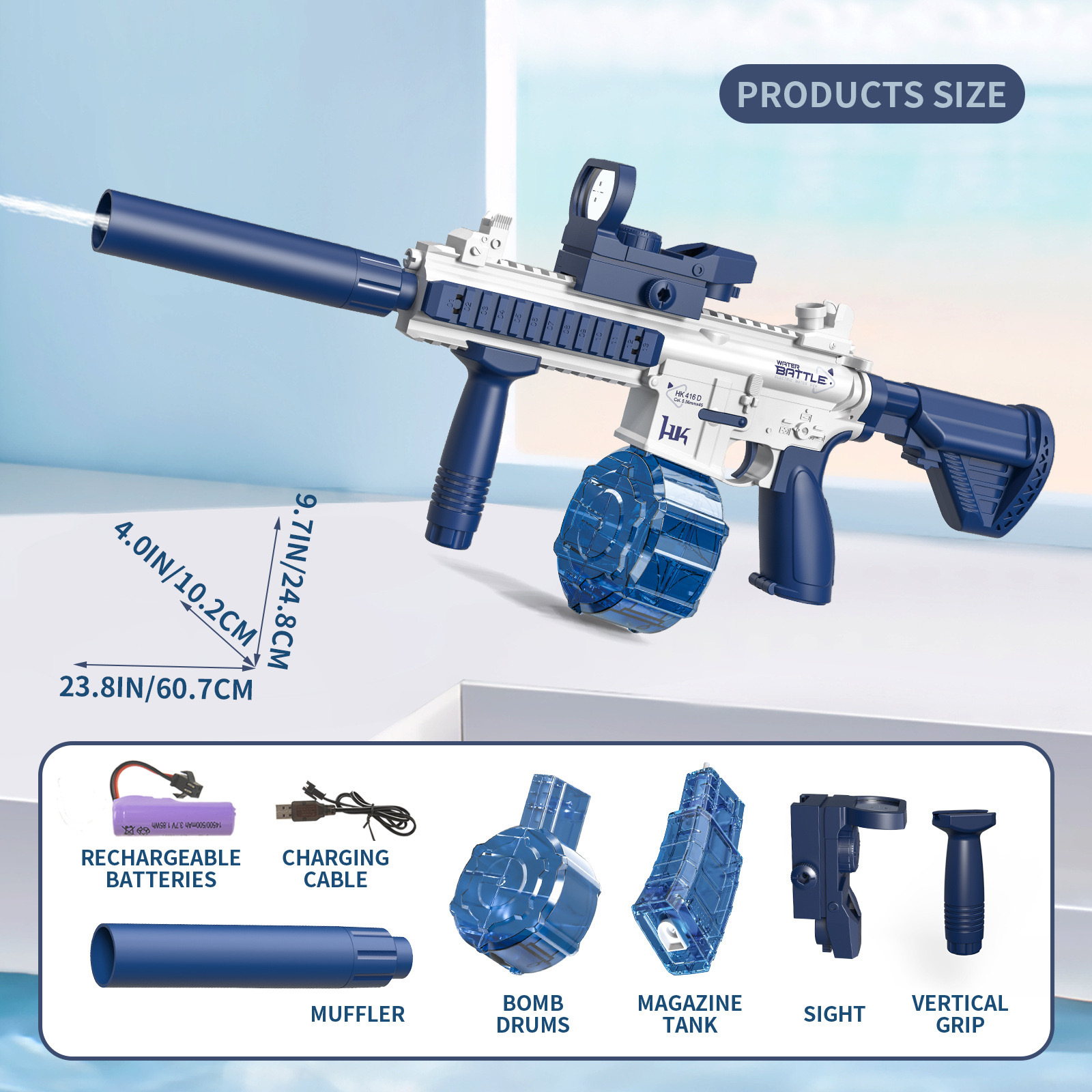 • M416 손-자체 통합 전기 물 총-블루 [표준] 물 저장 두 배 거울