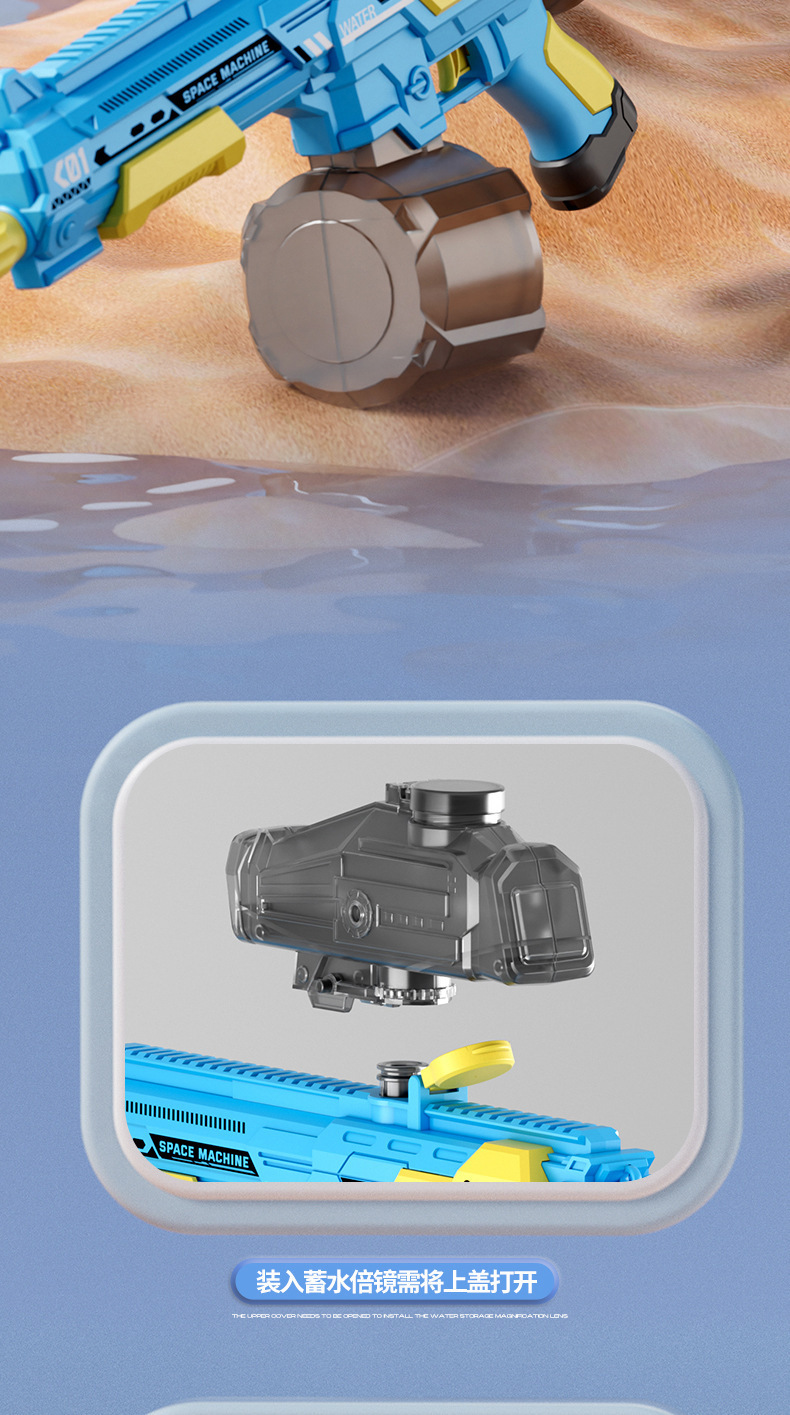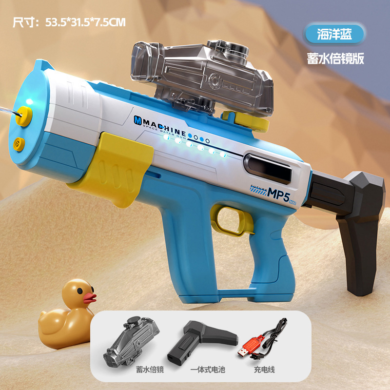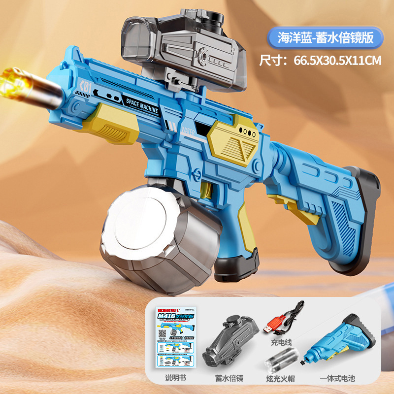 • M416 파이어 라이트 수동-자동 전기 물총-블루 [표준 구성] + 물 저장 돋보기