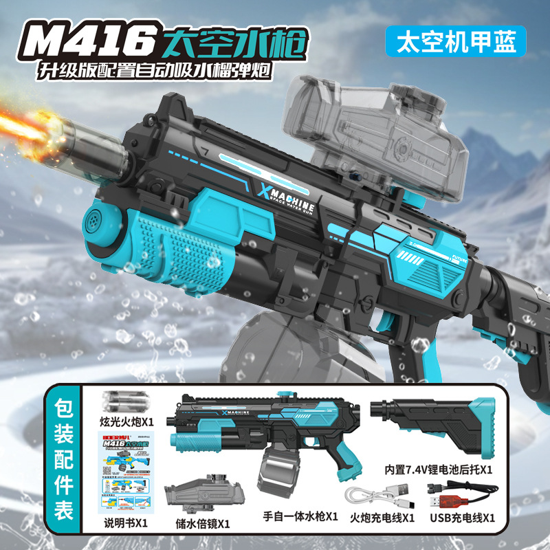 • [자동 물 흡수] M416 핸드-인-원 전기 물 총-블루 [업그레이드 하이 에디션]]