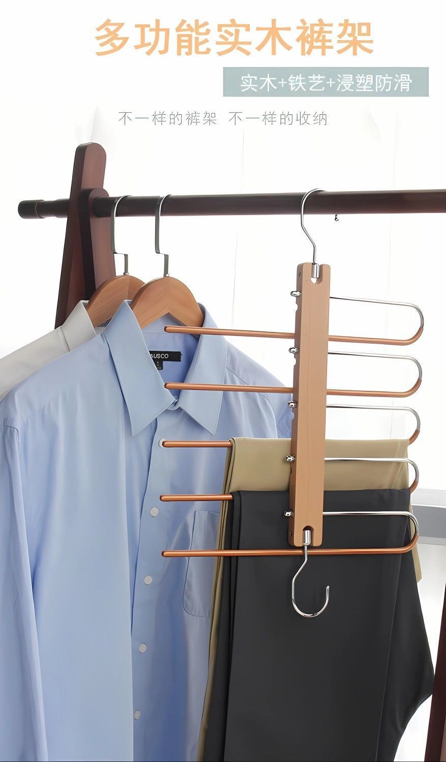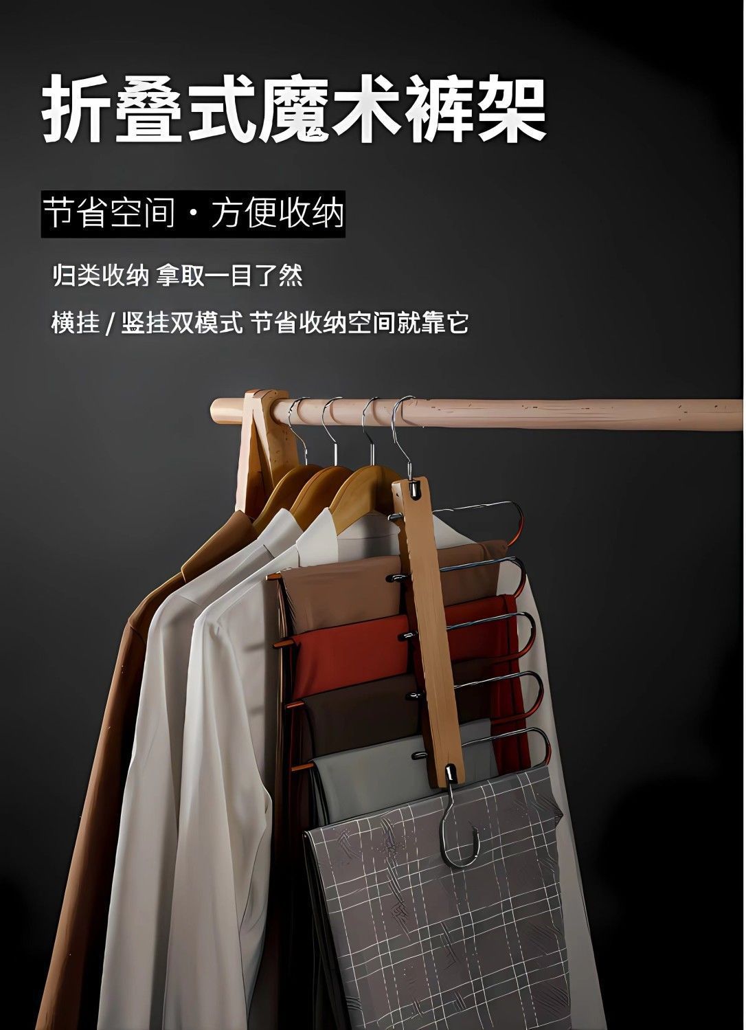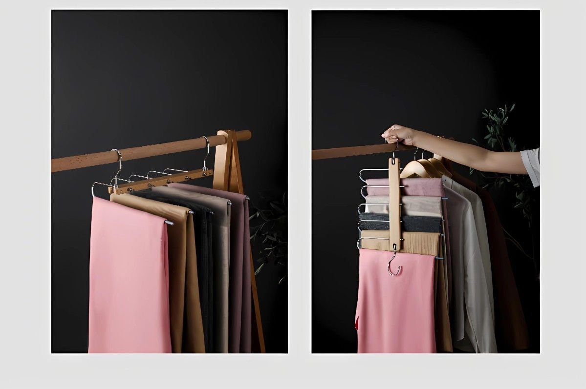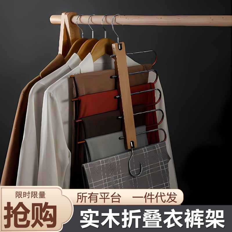 단단한 나무 접이식 바지 랙 다기능 다층 바지 걸이 가정용 매직 원활한 바지 클립 옷장 보관 바지 걸이스토어 가기