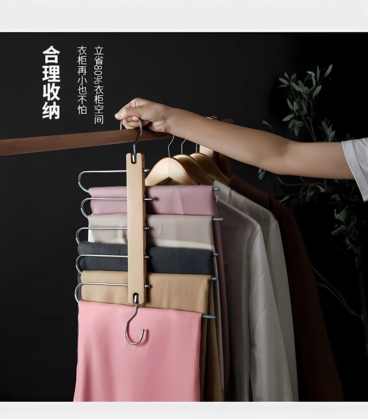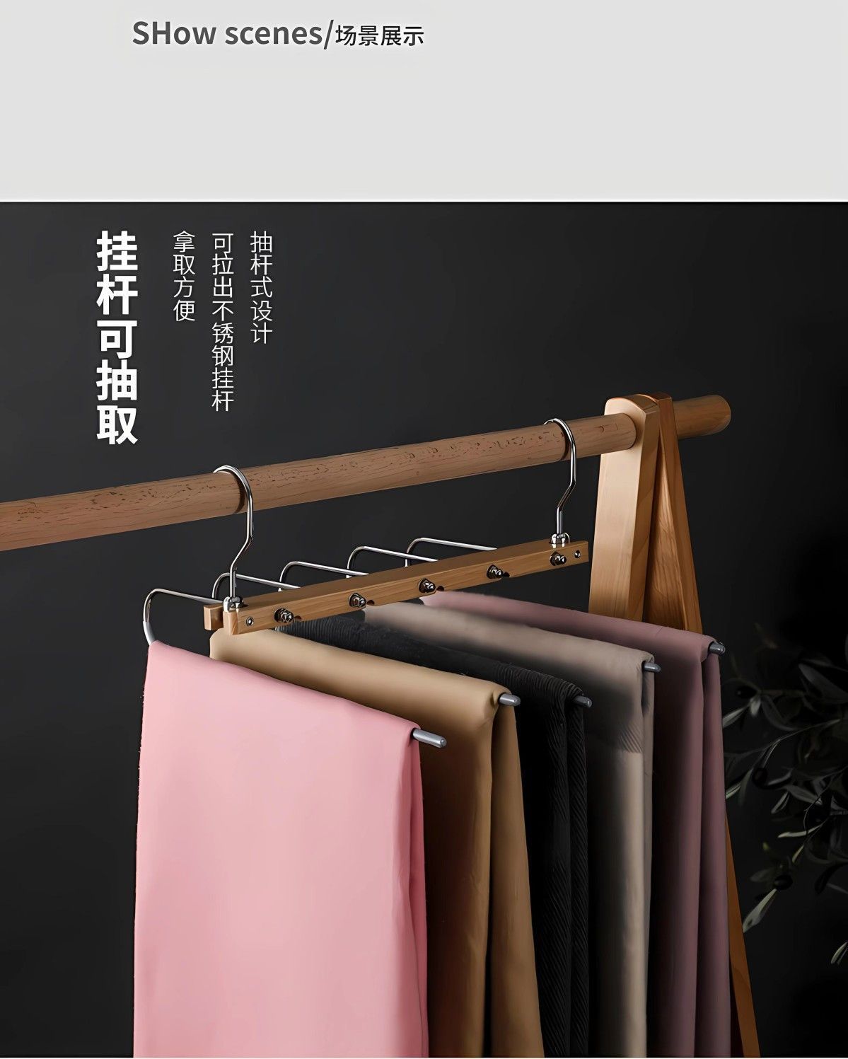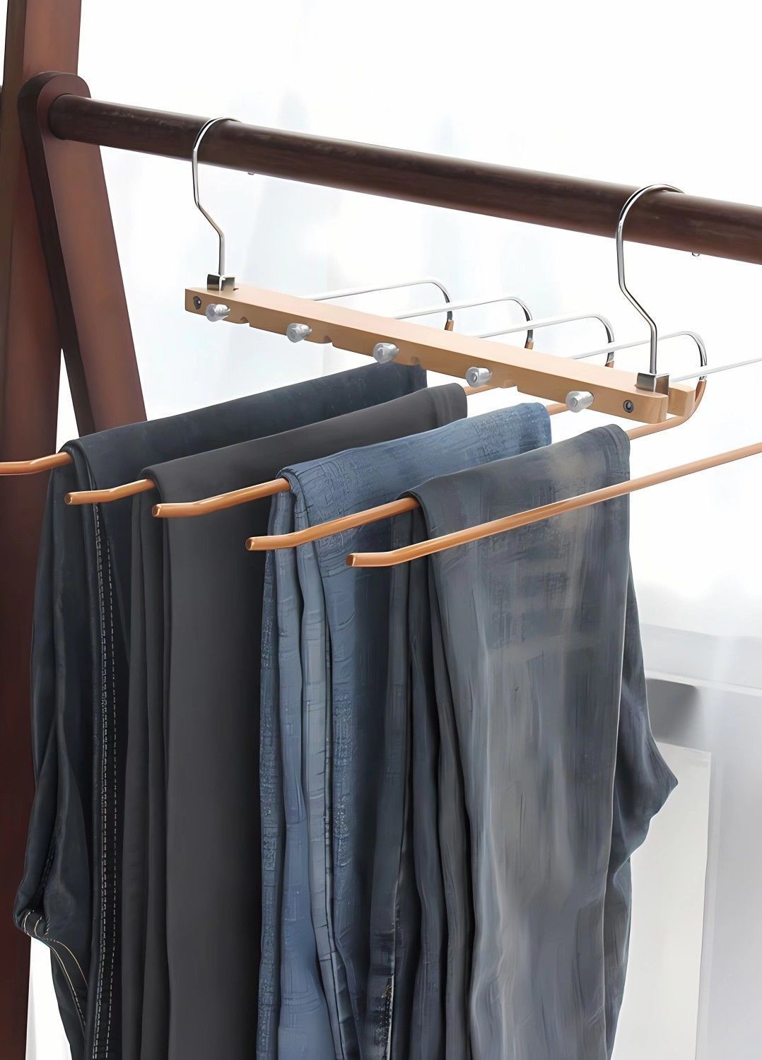 단단한 나무 접이식 바지 랙 다기능 다층 바지 걸이 가정용 매직 원활한 바지 클립 옷장 보관 바지 걸이스토어 가기