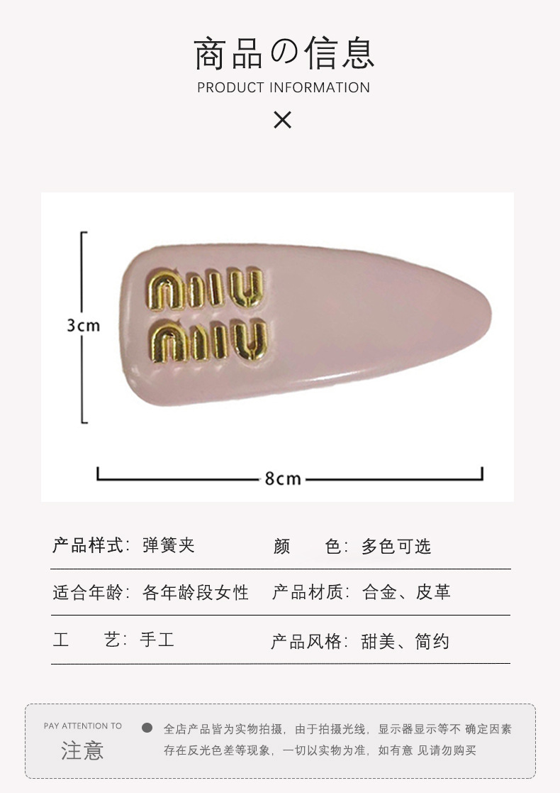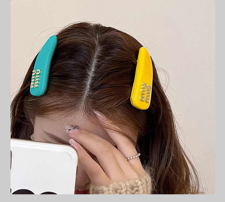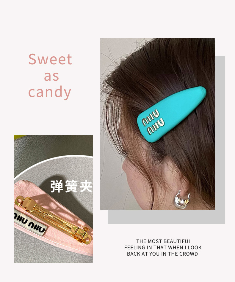 패션 miu 편지 머리핀 열 캔디 컬러 봄 클립 앞머리 사이드 클립 여성을위한 간단한 기질 헤어 액세서리