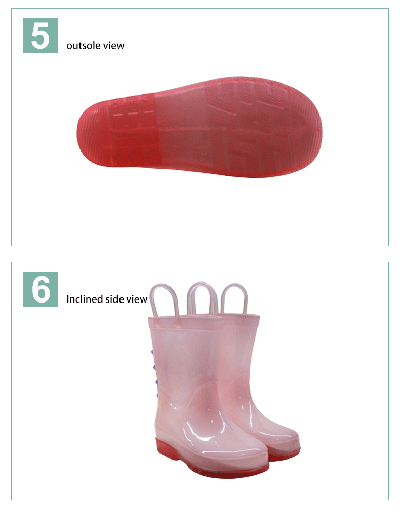 OEM 맞춤형 유럽과 미국 어린이 중간 길이 젤리 컬러 PVC 장화 소녀 방수 장화 커버 고무 신발 장화