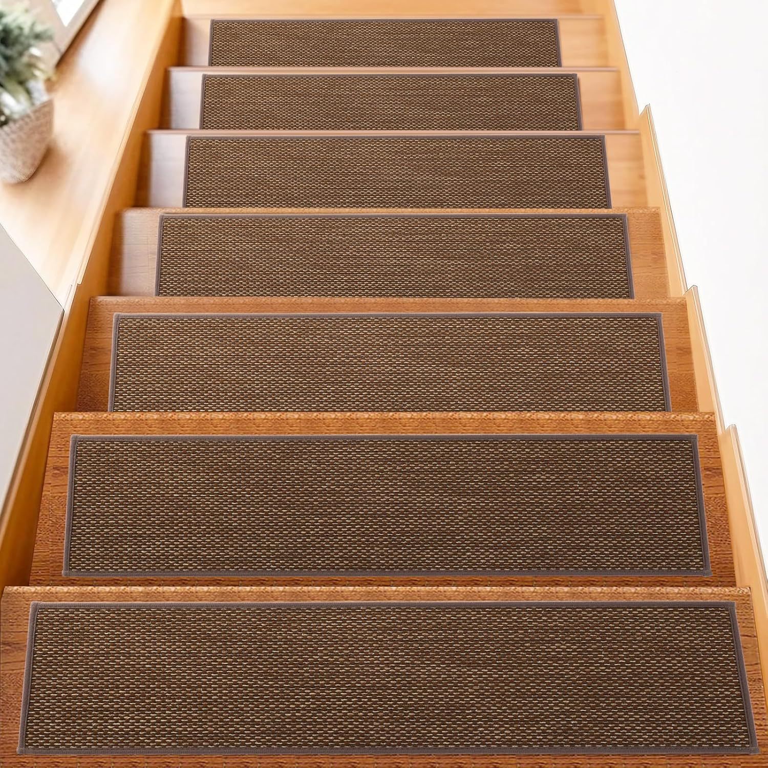 일본 모조 리넨 계단 매트 자체 접착 가정용 단단한 바닥 매트 접착제가없는 단계 스티커 계단 카펫을 붙일 수 있습니다스토어 가기