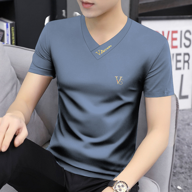 모달 아이스 실크 반팔 티셔츠 남성용 여름 얇은 빠른 건조 땀 흡수 상의 남성용 통기성 빠른 건조