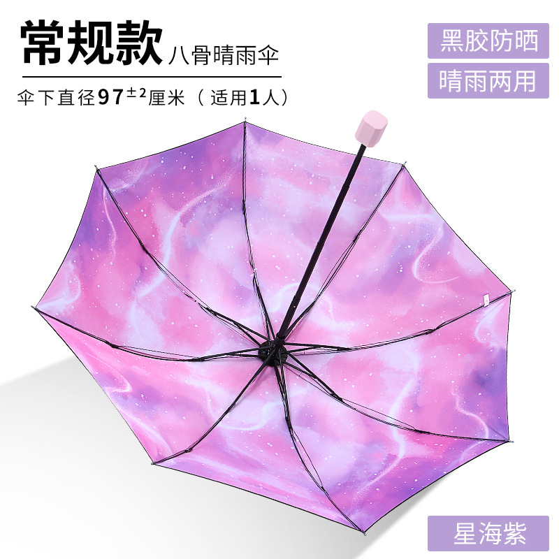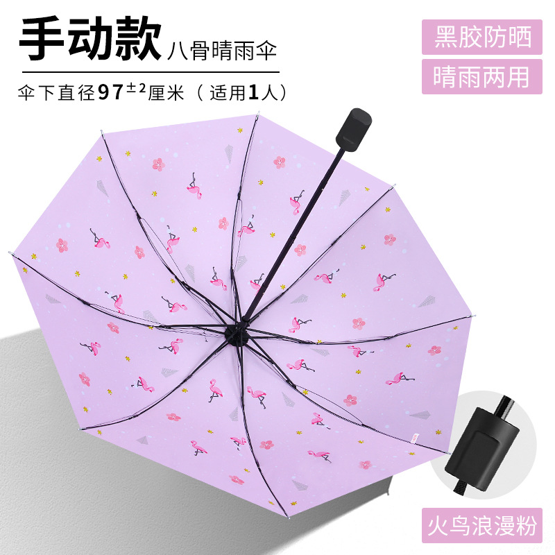 • 파우더 모란-수동 더블 레이어 8 본 블랙 고무 우산 (핸드백 보내기)