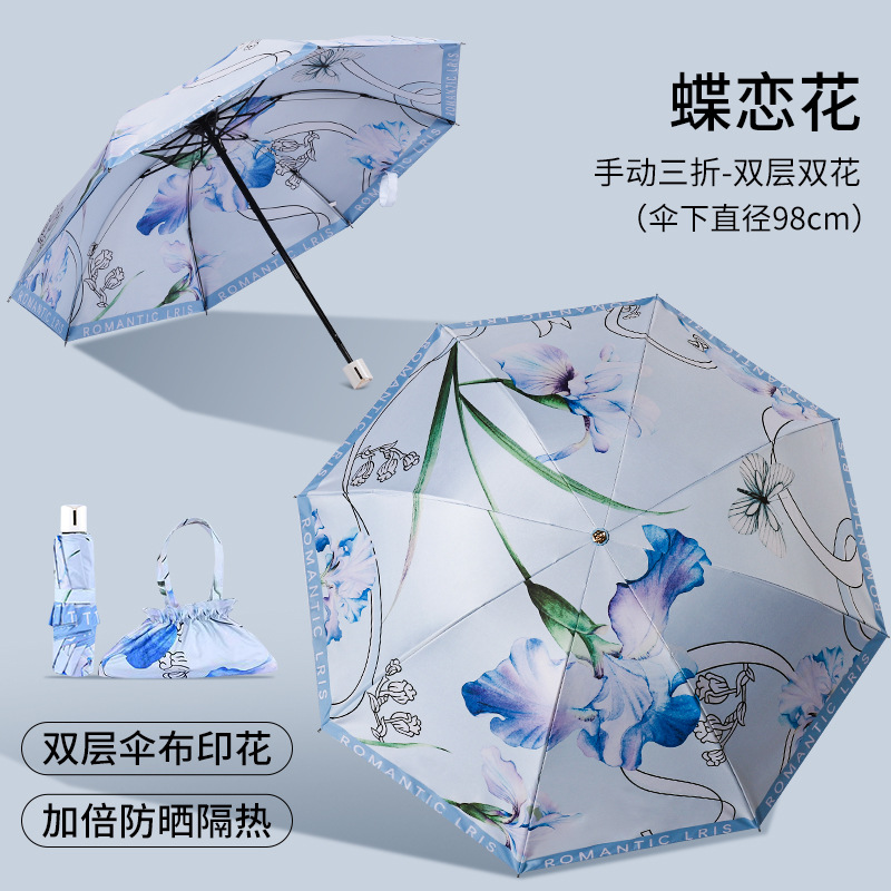 • 나비 사랑 꽃-수동 더블 레이어 8 뼈 검은 접착제 우산 (핸드백)
