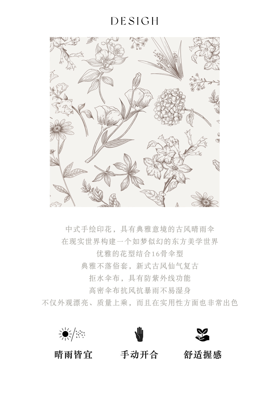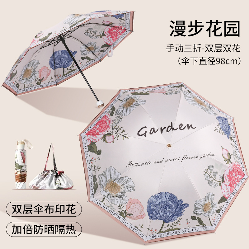 • 정원을 걷다-수동 더블 레이어 8 본 블랙 접착제 우산 (핸드백 보내기)