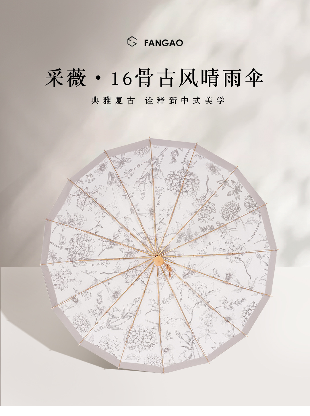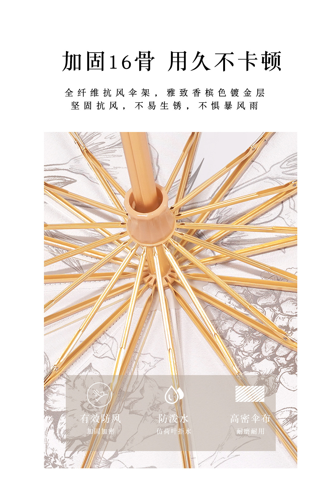 레트로 하이 컬러 가치 16 뼈 컬러 접착제 더블 레이어 태양 우산 소녀 태양 보호 자외선 차단 차양