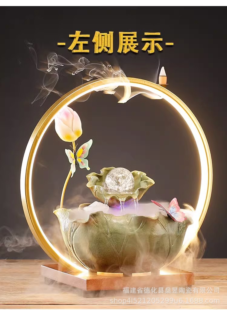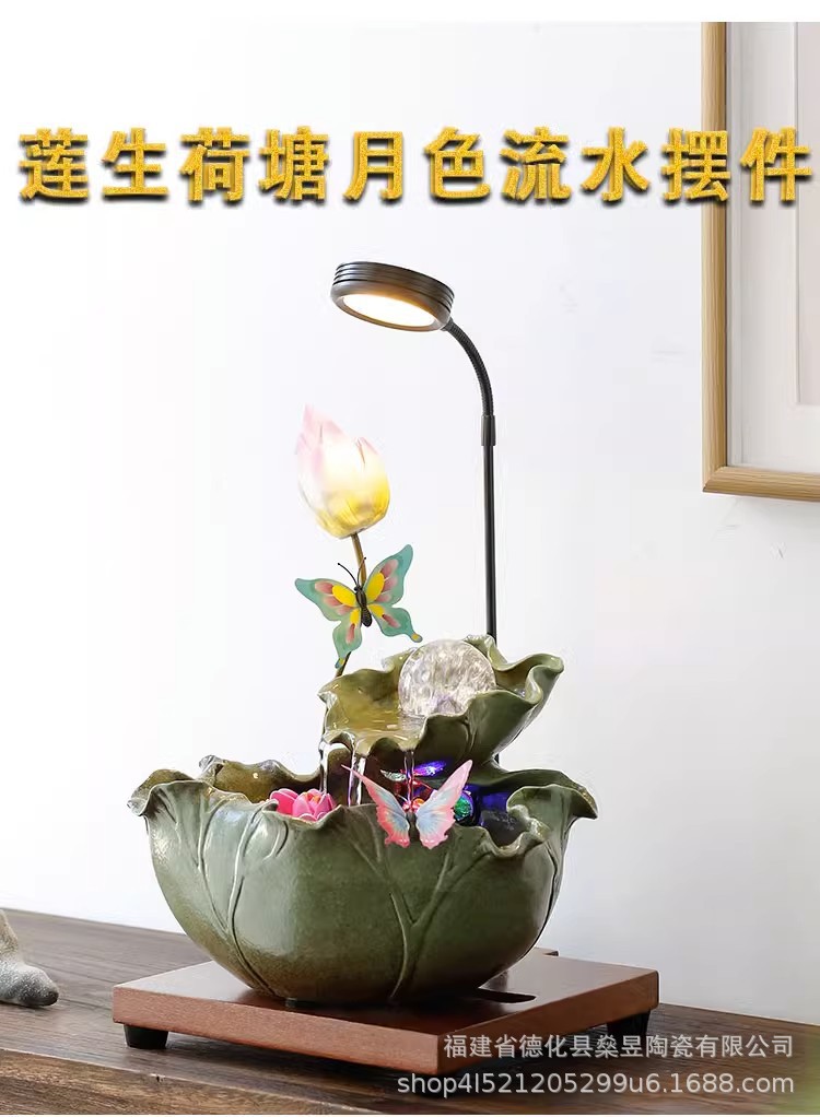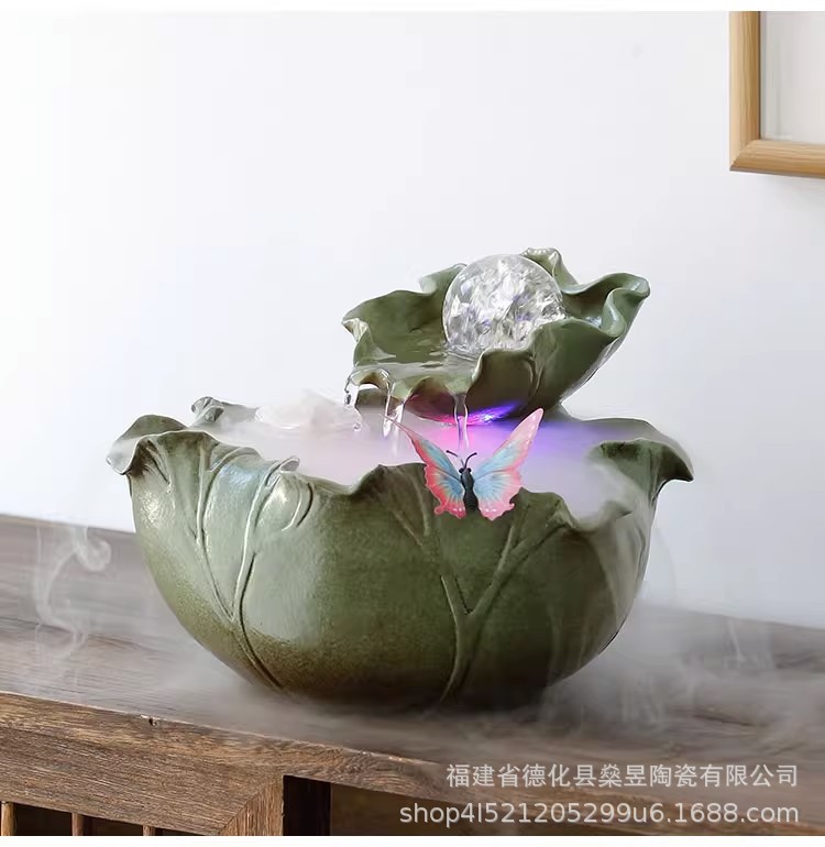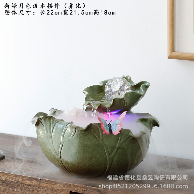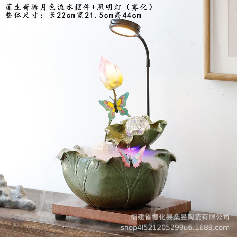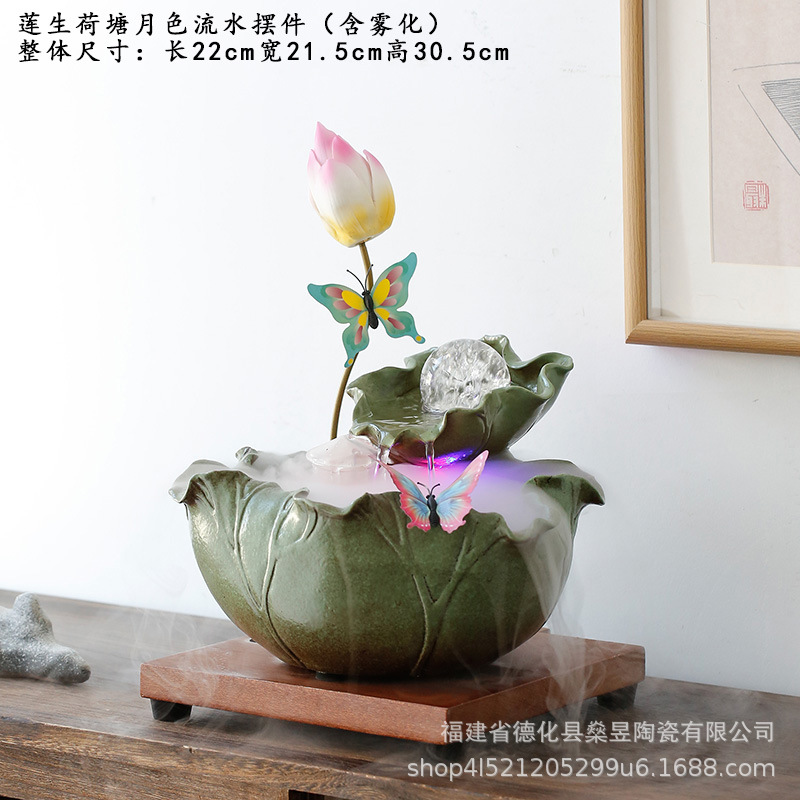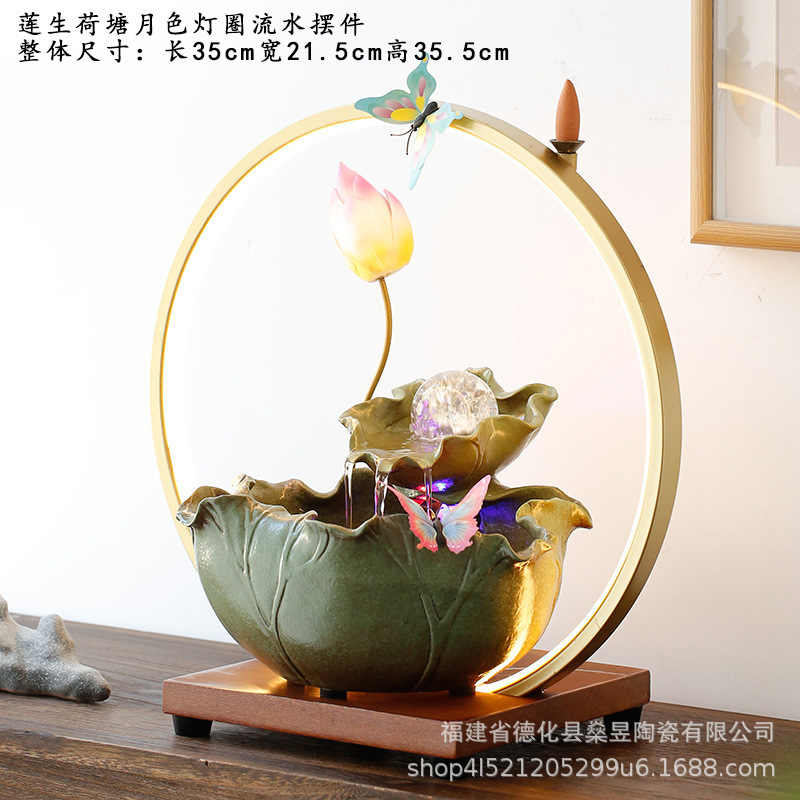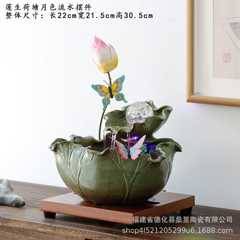 로터스 크리 에이 티브 간단한 데스크탑 세라믹 순환 분수 행운의 장식 사무실 입구 홈 장식