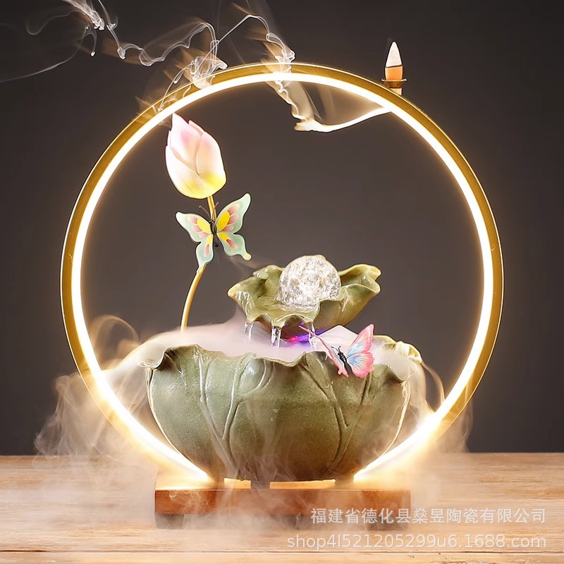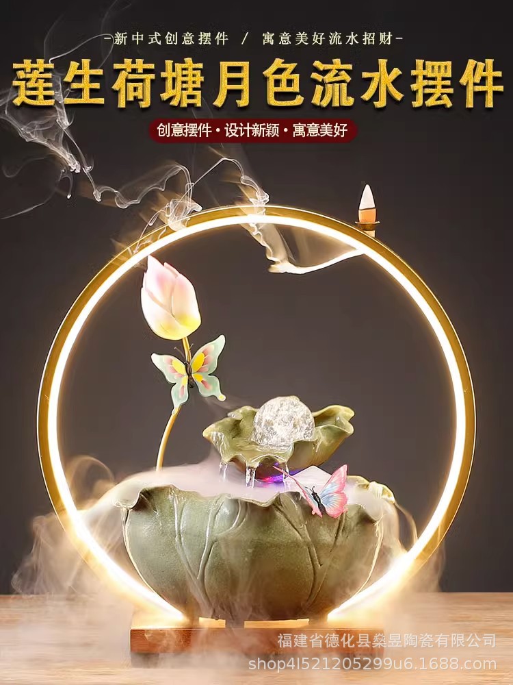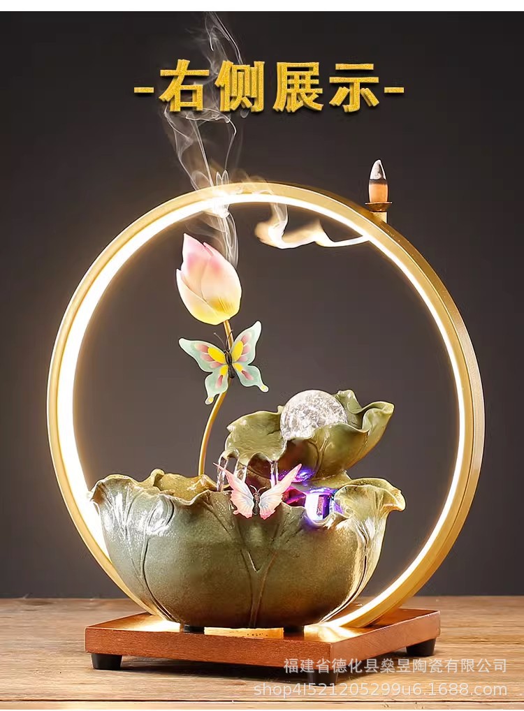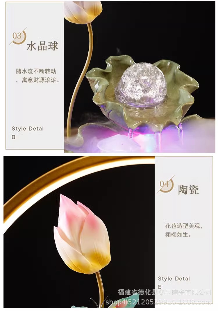 로터스 크리 에이 티브 간단한 데스크탑 세라믹 순환 분수 행운의 장식 사무실 입구 홈 장식스토어 가기
