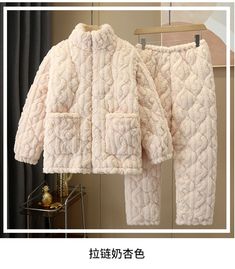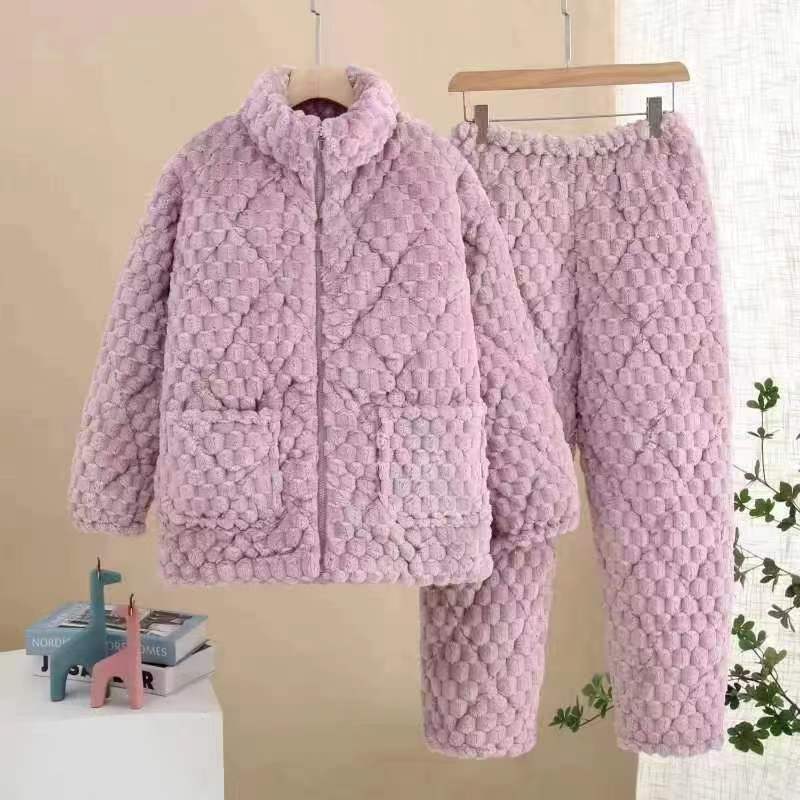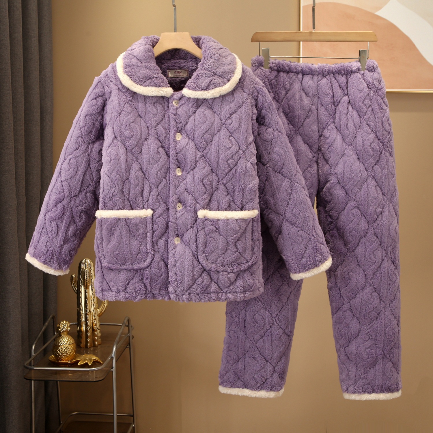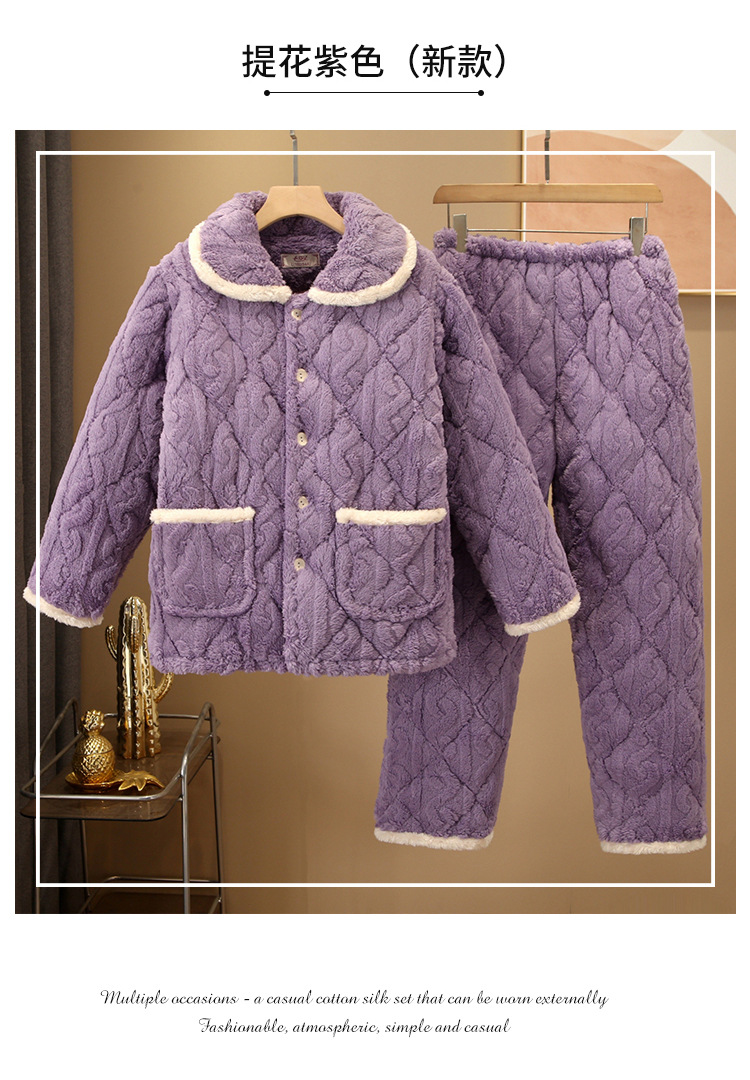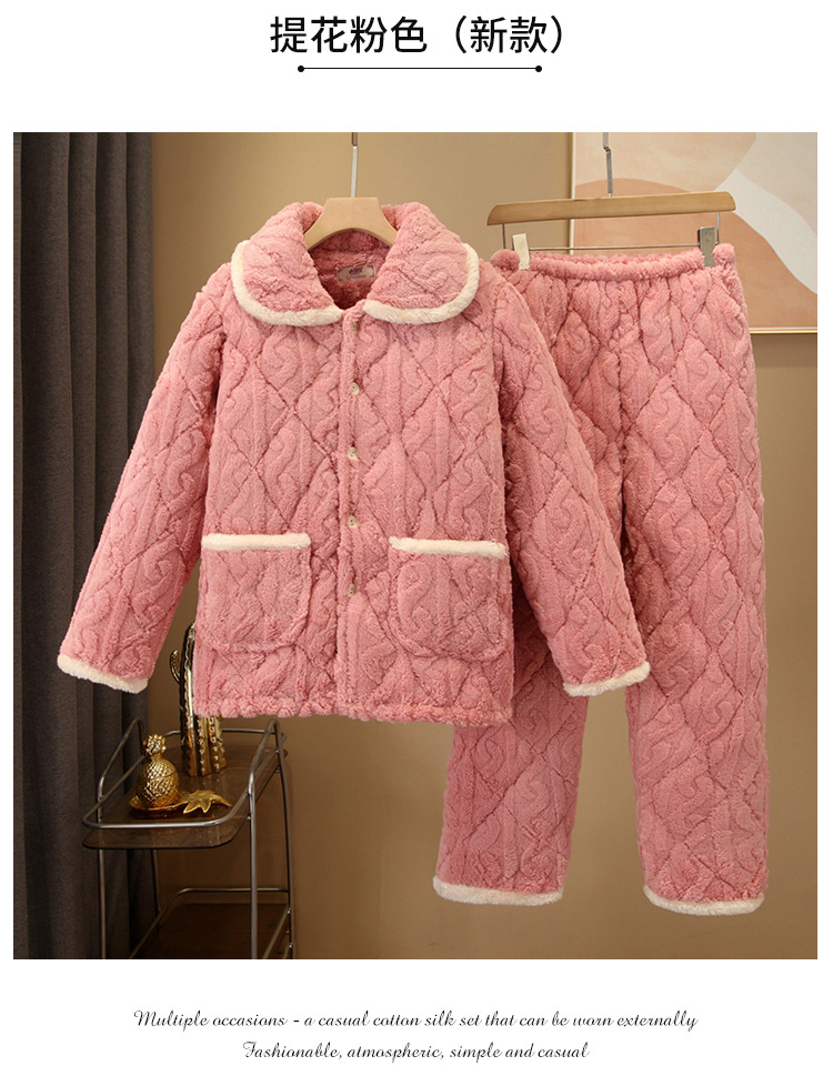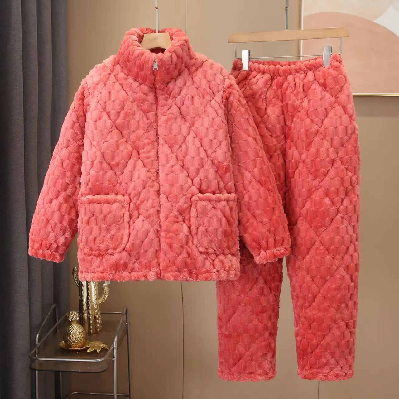 2025 겨울 여성용 잠옷 신상품 3중 벨벳 두꺼운 누빔 보온 코랄 벨벳 홈웨어 세트 외출복으로도 가능